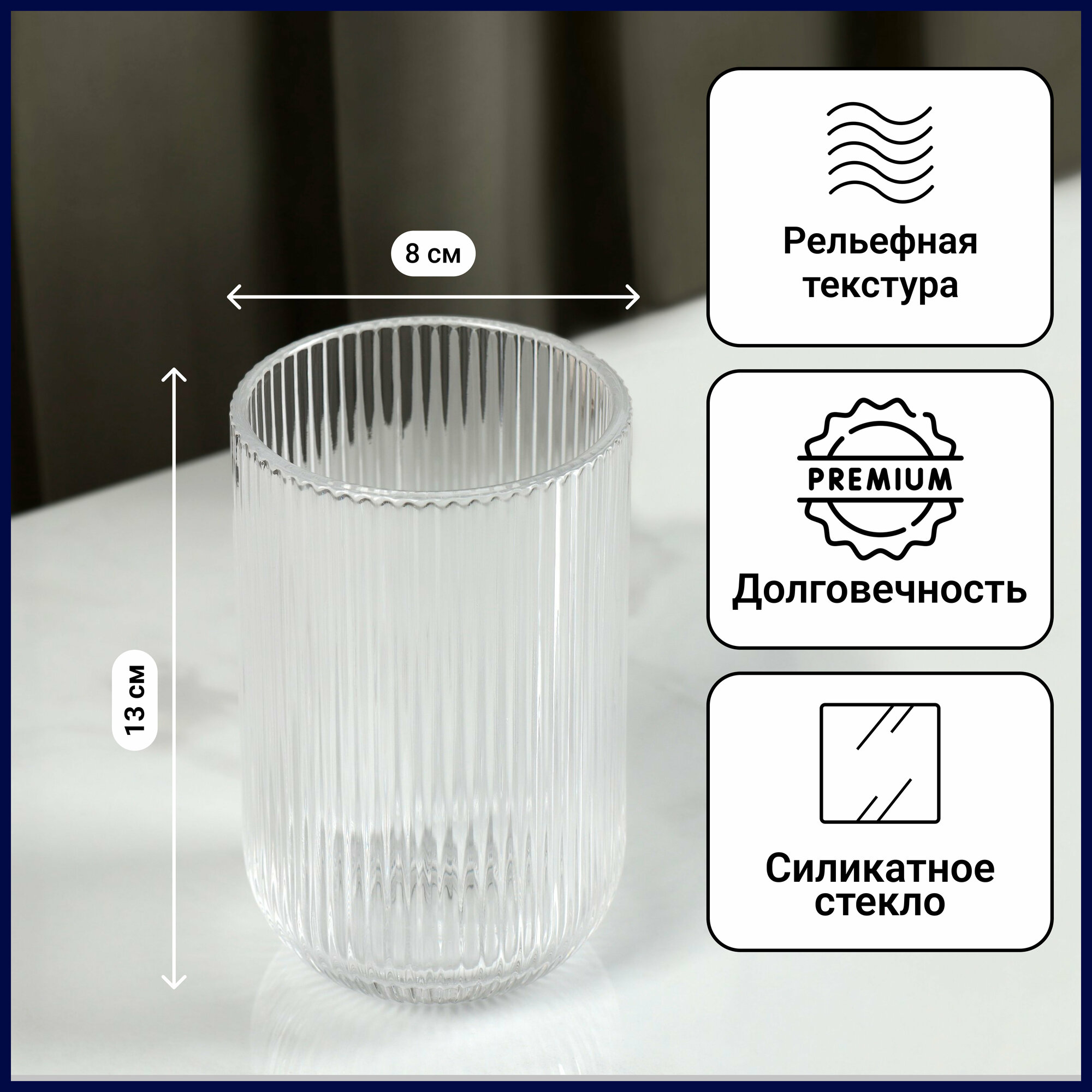 Стакан стеклянный «Грани», 300 мл, 7,5×7,5×8,5 см