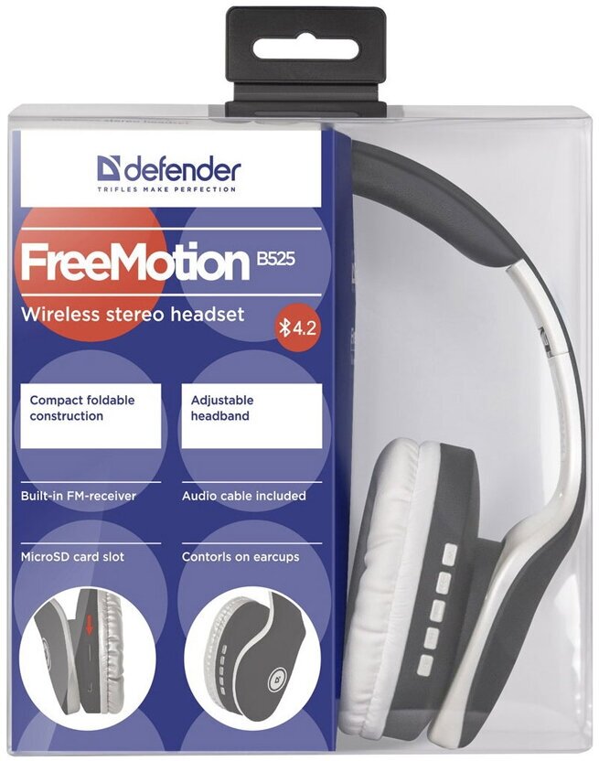 Наушники беспроводные Defender FreeMotion B525 черный+белый, Bluetooth 63525 .