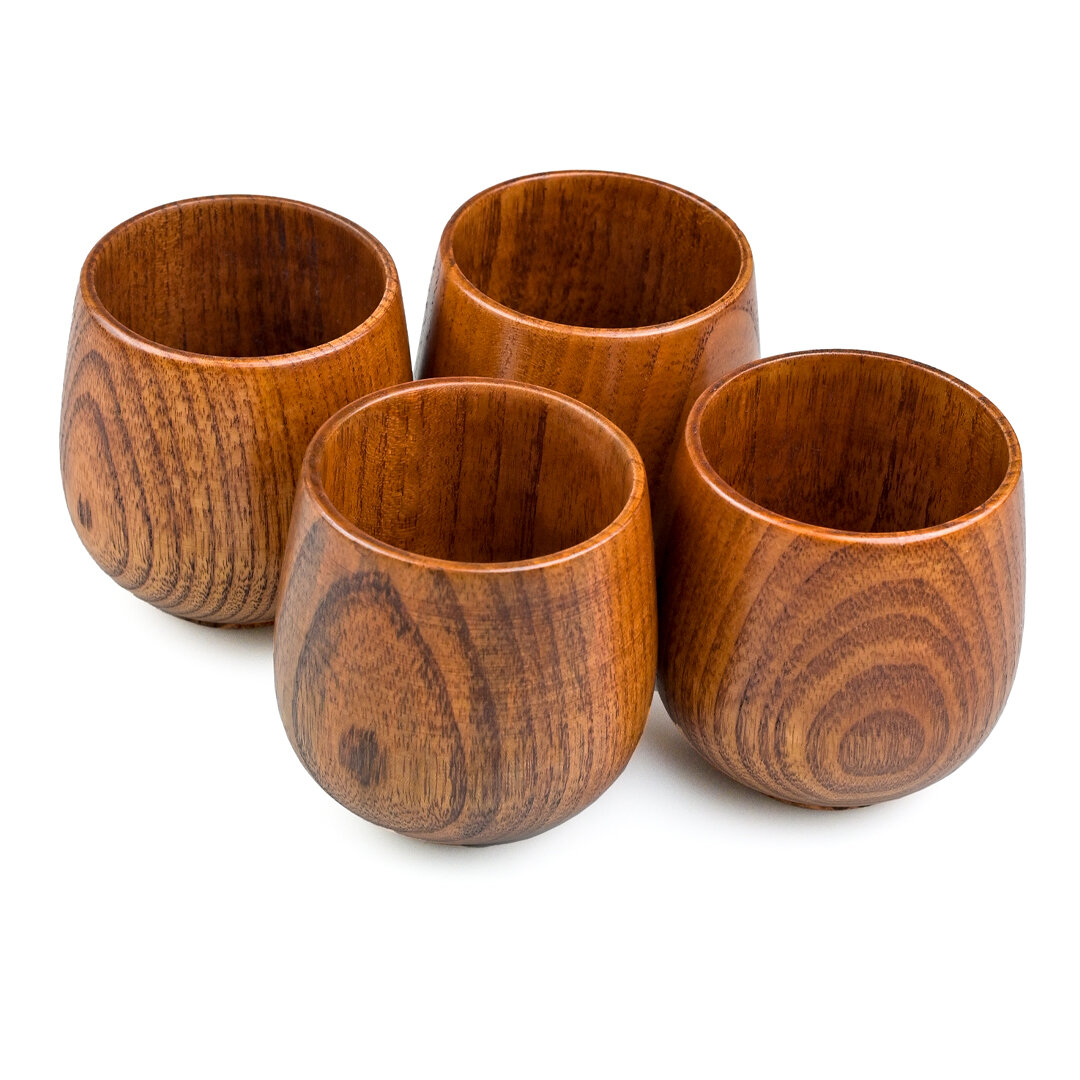 Пиала кружка стакан деревянная 80х65 мм - 4 шт для чая и напитков для дома, офиса, бани