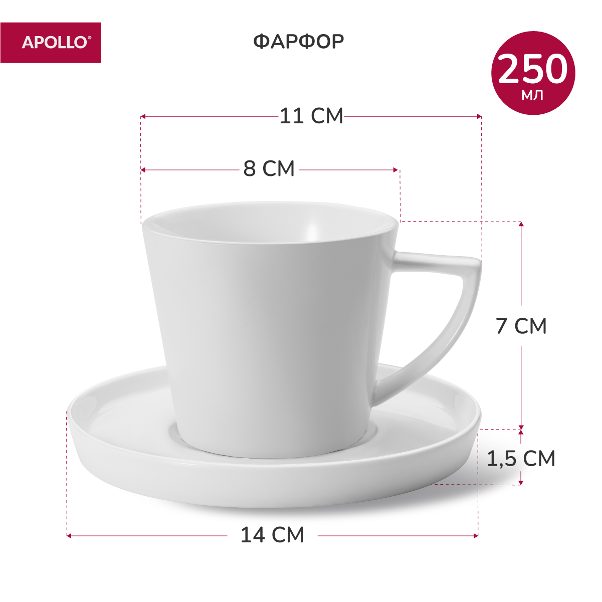 Чайная пара, чашка с блюдцем из фарфора 250 мл Apollo "Blanco", 4 предмета интересное: