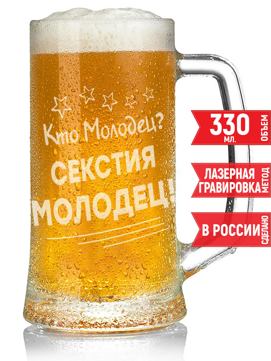 Кружка пивная Кто молодец? Секстия Молодец! - 330 мл. интересное:
