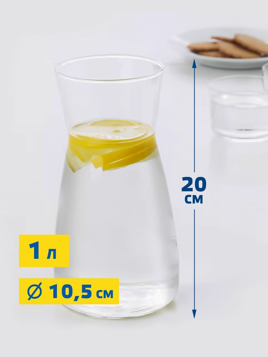 Графин для напитков IKEA KARAFF / икеа карафф кувшин для воды, вина и лимонада, стеклянный 1 литр универсальный, можно мыть в посудомоечной машине, температура напитков до 50 градусов интересное: