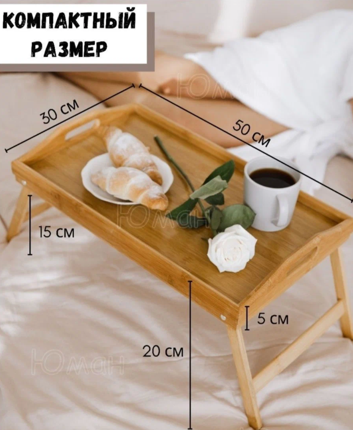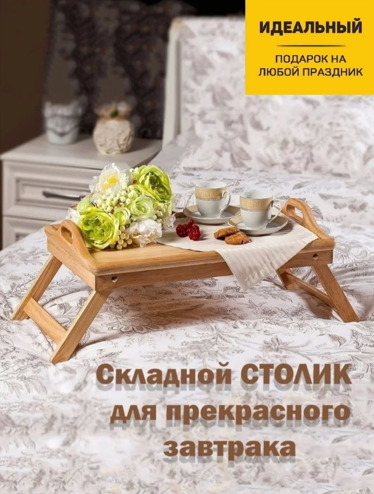 Купить Складной столик поднос деревянный / Столик бамбуковый / Столик складной в кровать с ножками /