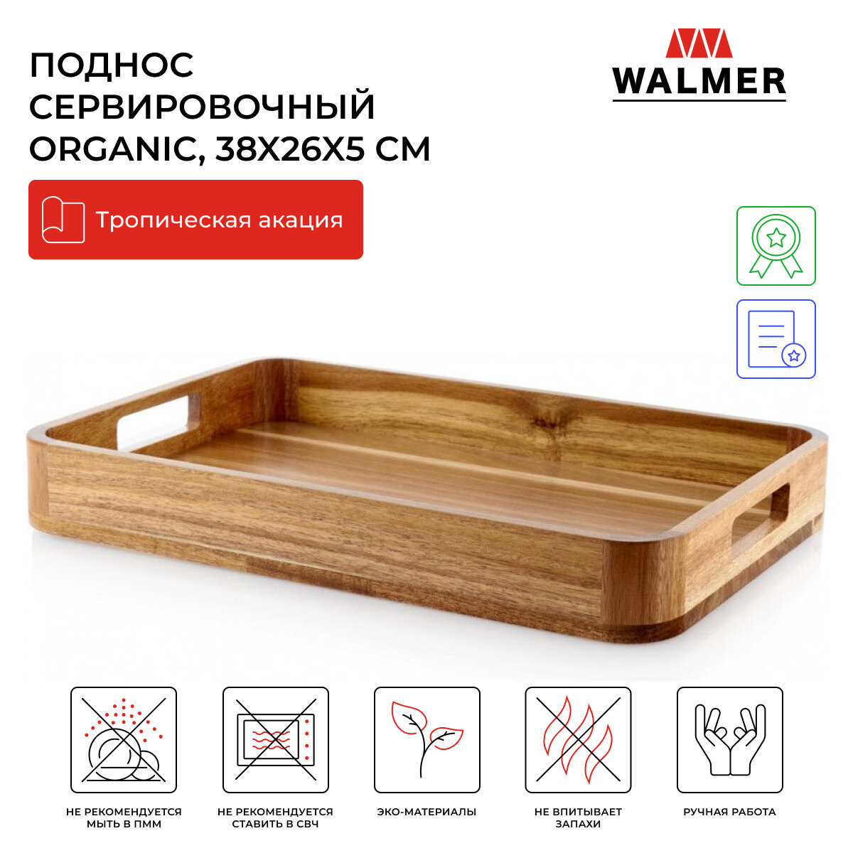 Купить Поднос Walmer прямоугольный с ручками ORGANIC, 38х26х5см W37000887
