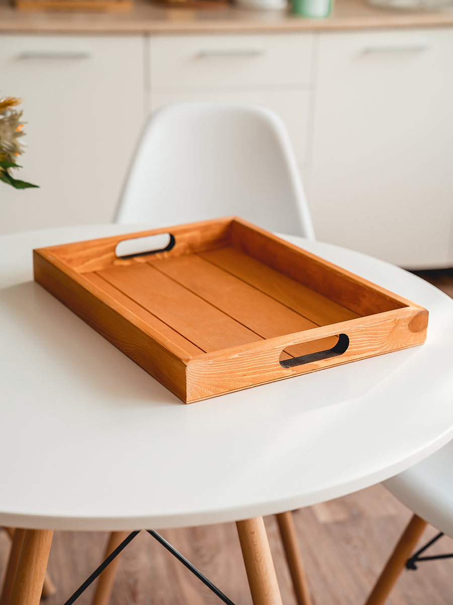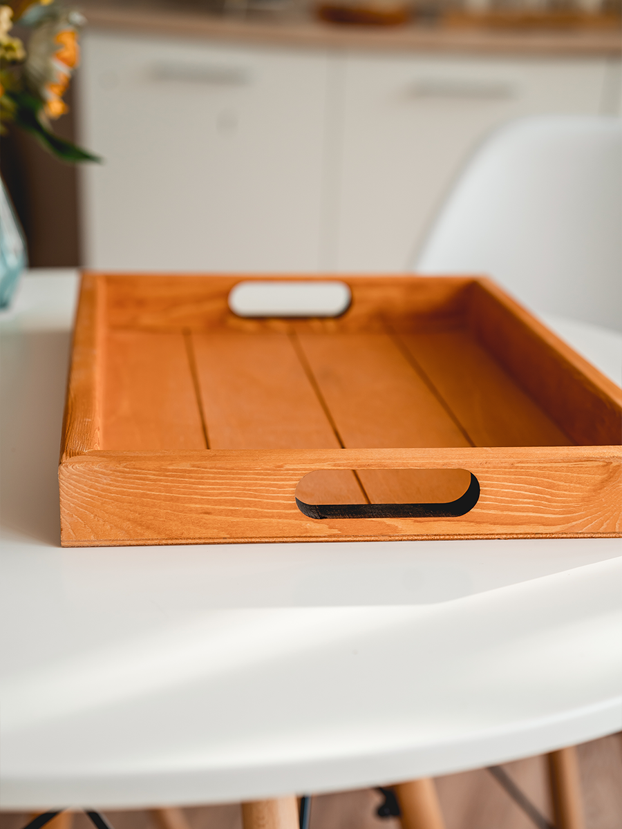 Поднос деревянный декоративный интерьерный для завтрака натуральный