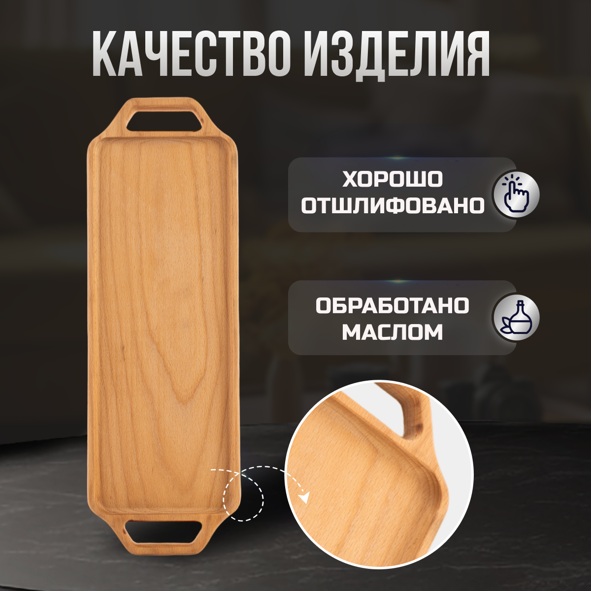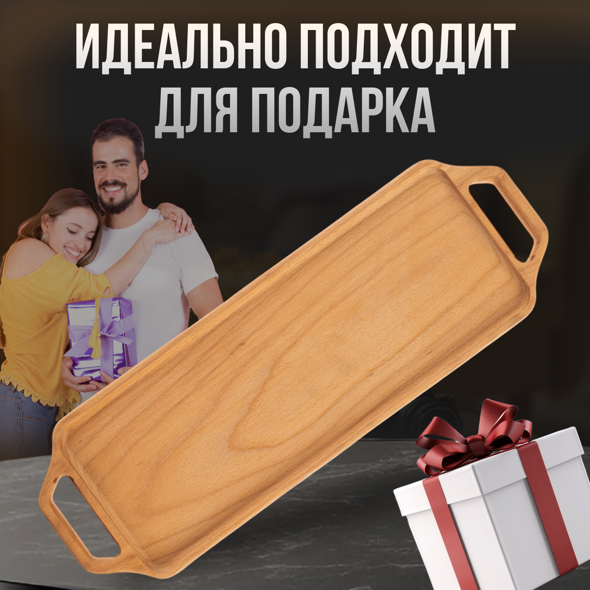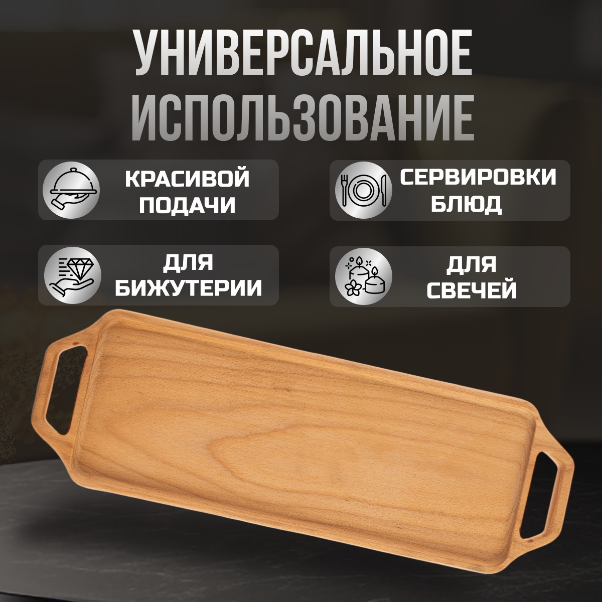 Поднос деревянный декоративный для подачи с ручками интересное: