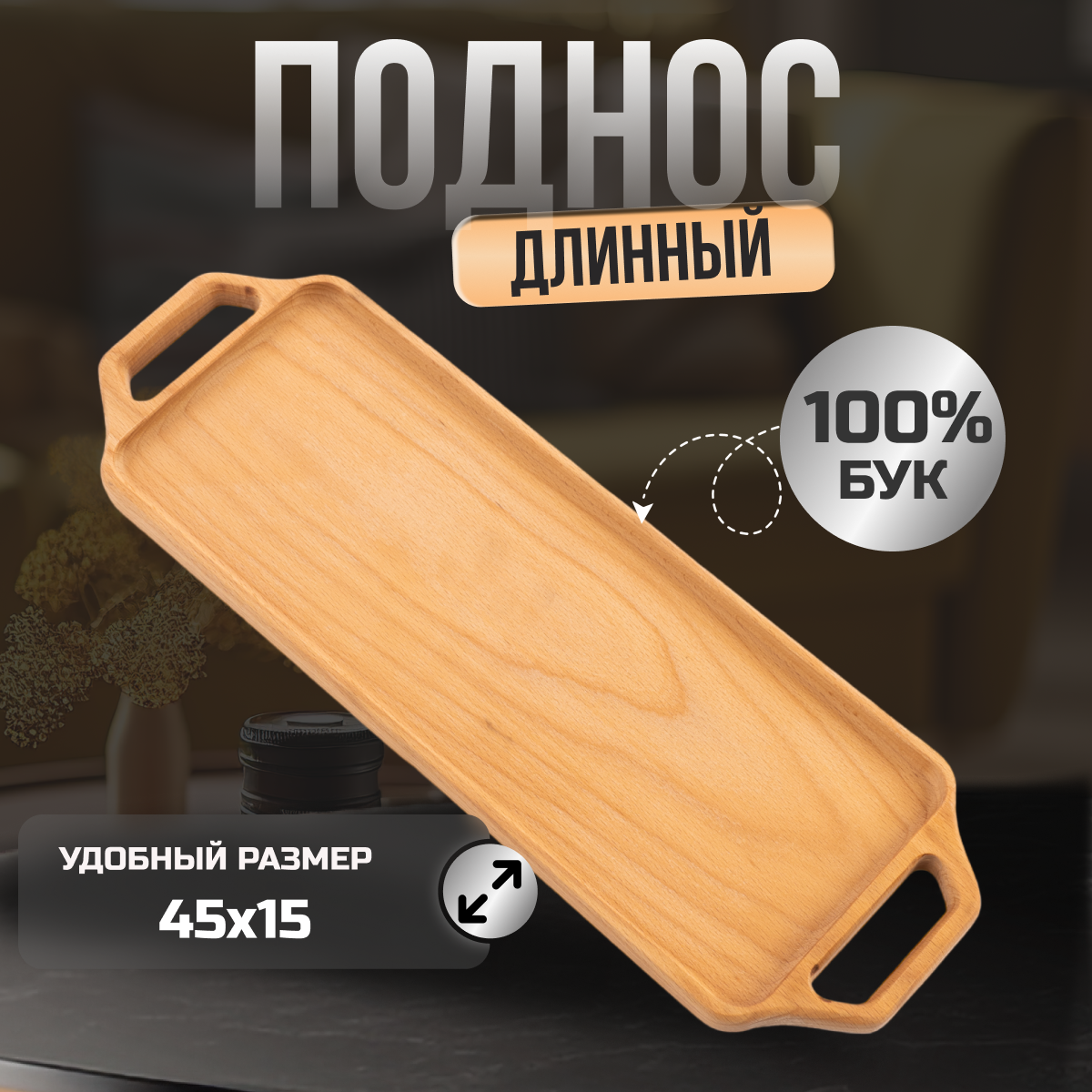 Поднос деревянный декоративный прямоугольный, бук