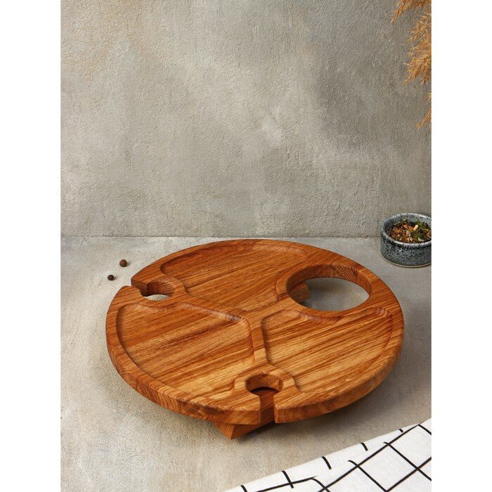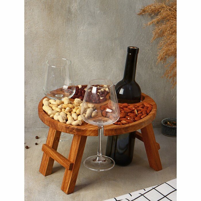 Купить Столик-поднос для вина Adelica, с менажницей и складными ножками, на 2 персоны, d=30 см, дуб
