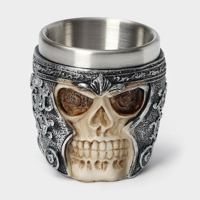 Стопка из нержавеющей стали «Череп в шлеме. Хэллоуин», 70 мл, цвет серебряный интересное: