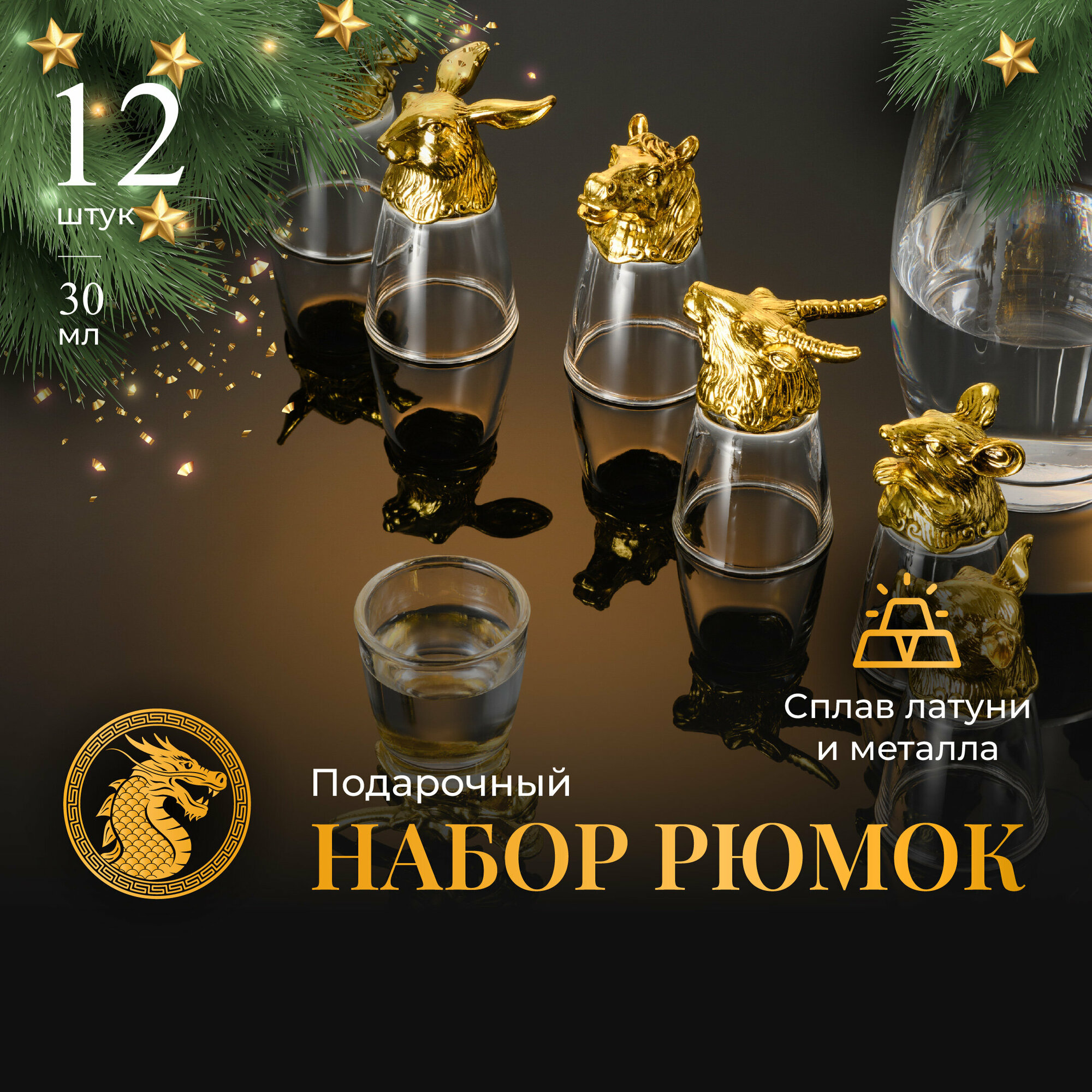 Подарочные рюмки перевертыши, Your Highball, Стопки стеклянные для водки, Набор 12 шт, Золото