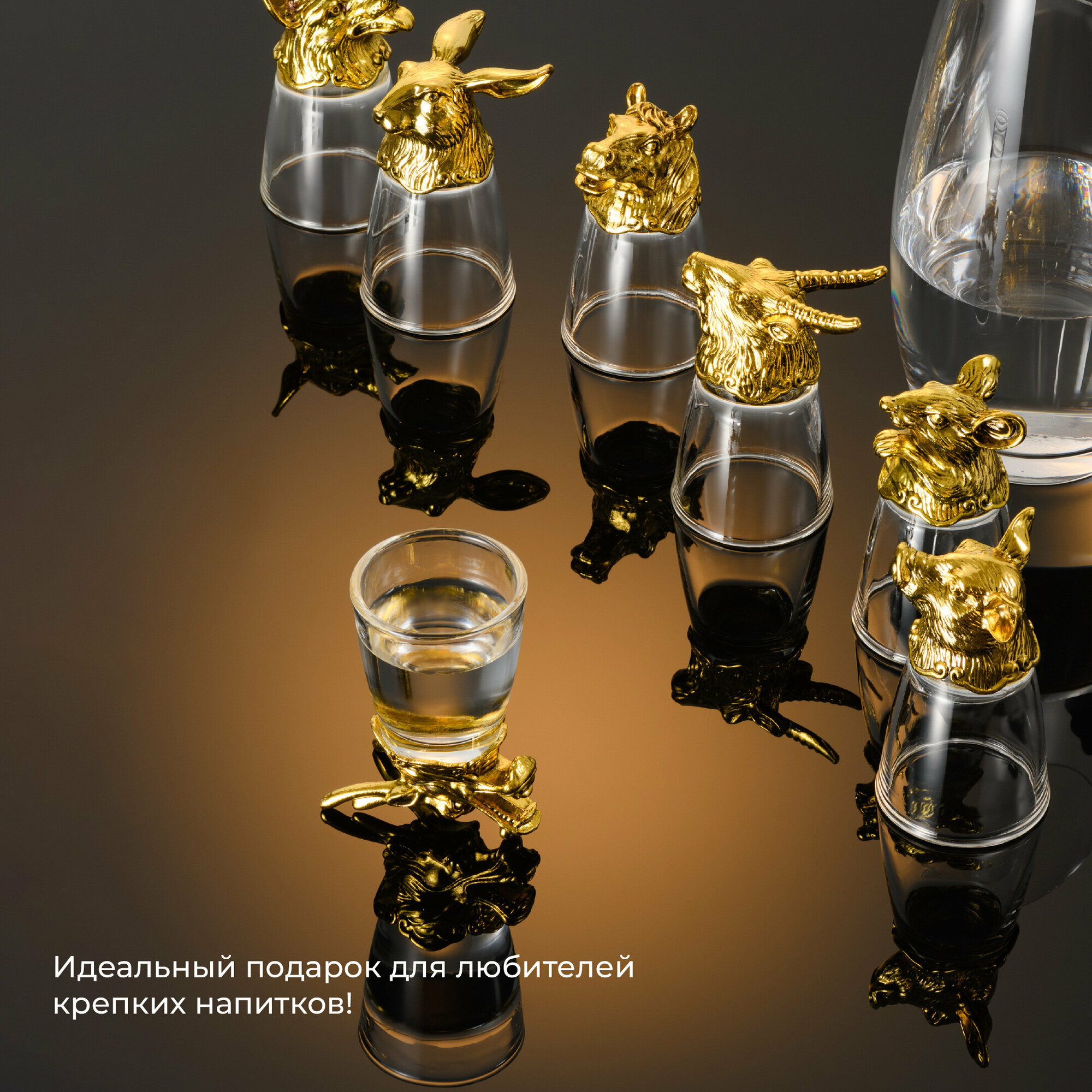Подарочные рюмки перевертыши с графином, Your Highball, Стопки стеклянные для водки, Набор 12 шт, Золотистый