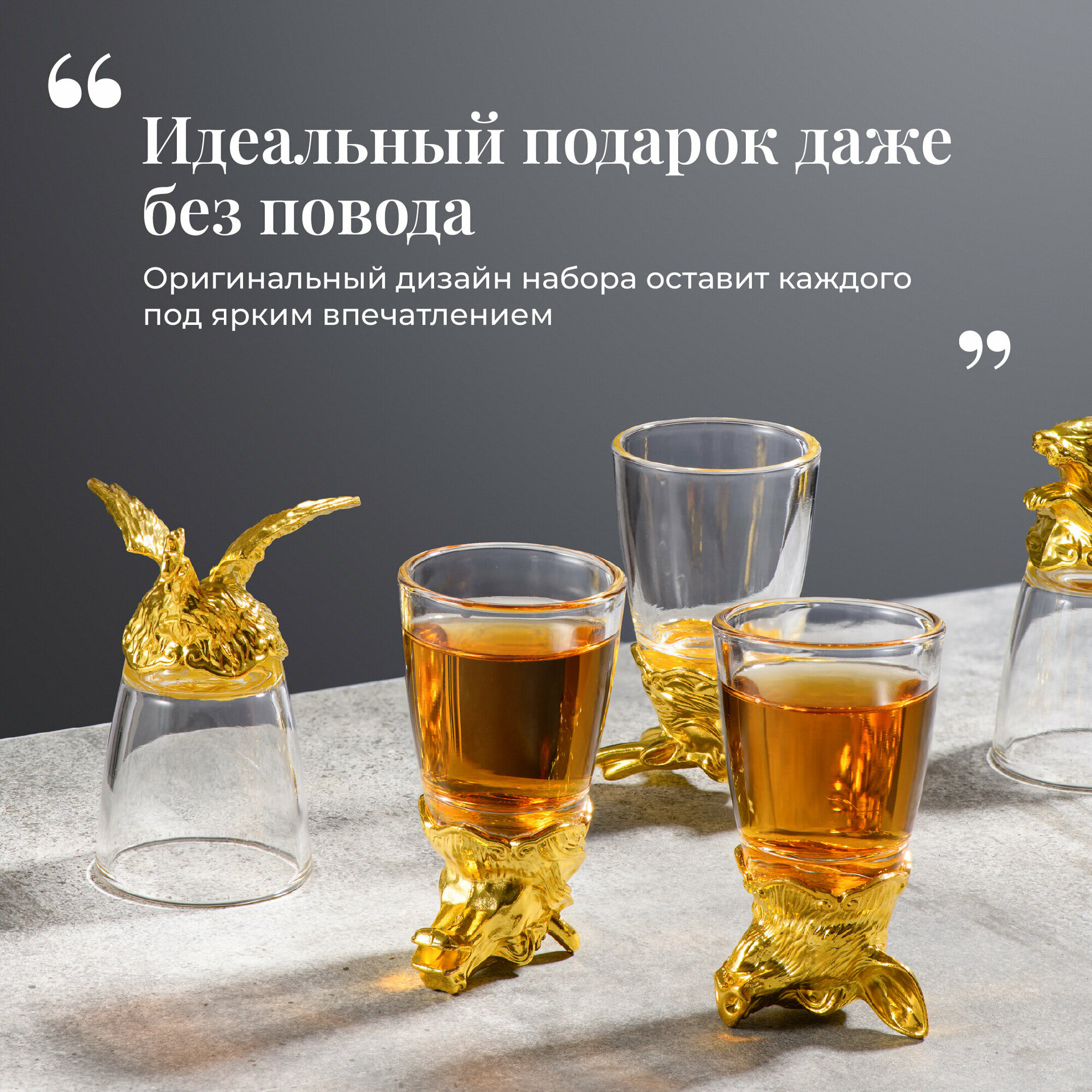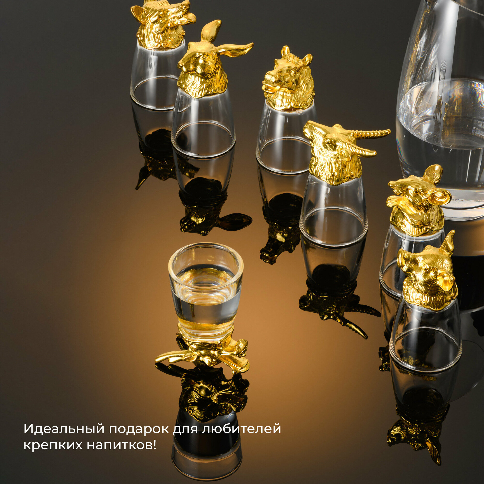Подарочные рюмки перевертыши с графином, Your Highball, Стопки стеклянные для водки, Набор 12 шт, Золотистый