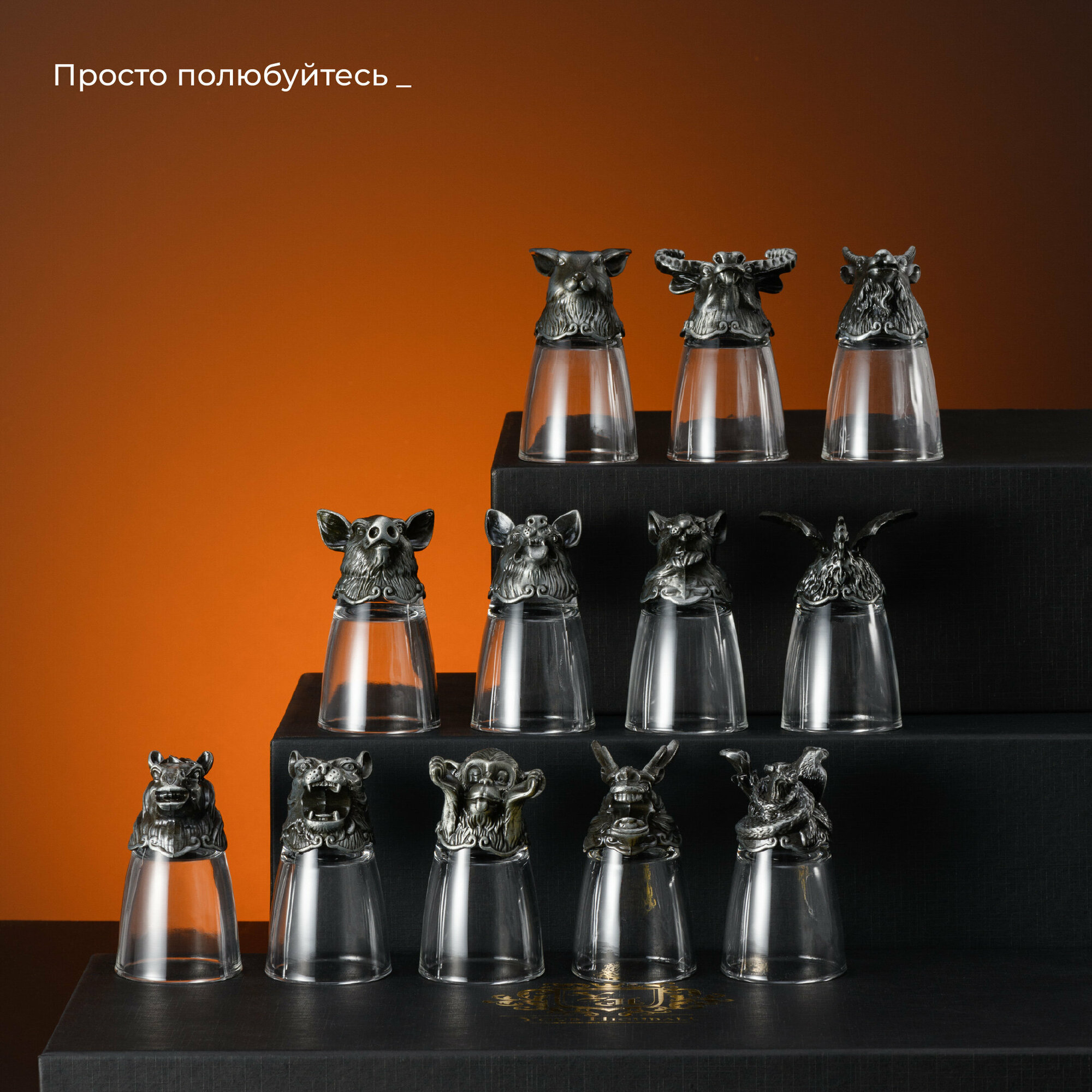 СохранитьПодарочные рюмки перевертыши, Your Highball, Стопки стеклянные для водки, Набор 12 шт, Черненое серебро интересное: