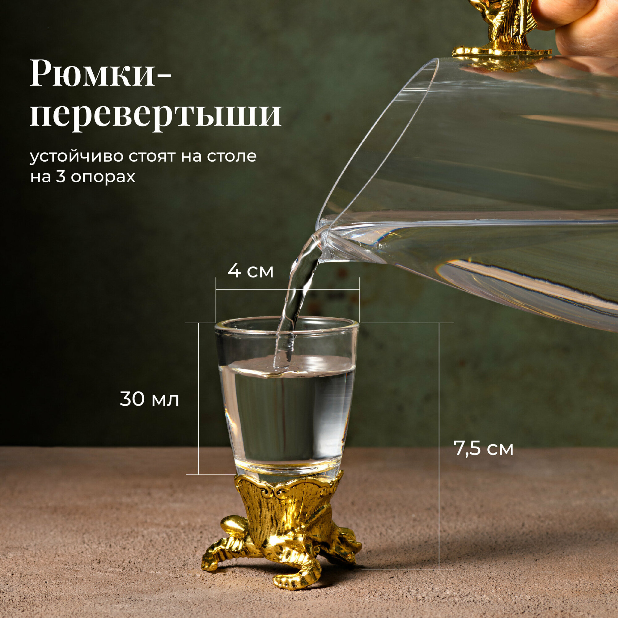 Подарочные рюмки перевертыши с графином, Your Highball, Стопки стеклянные для водки, Набор 12 шт, Золотистый