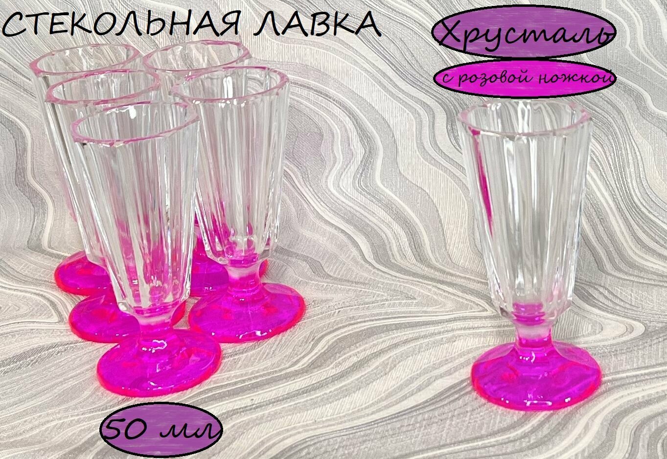 Рюмки набор 6 шт Лафитники 50 мл с розовой ножкой интересное: