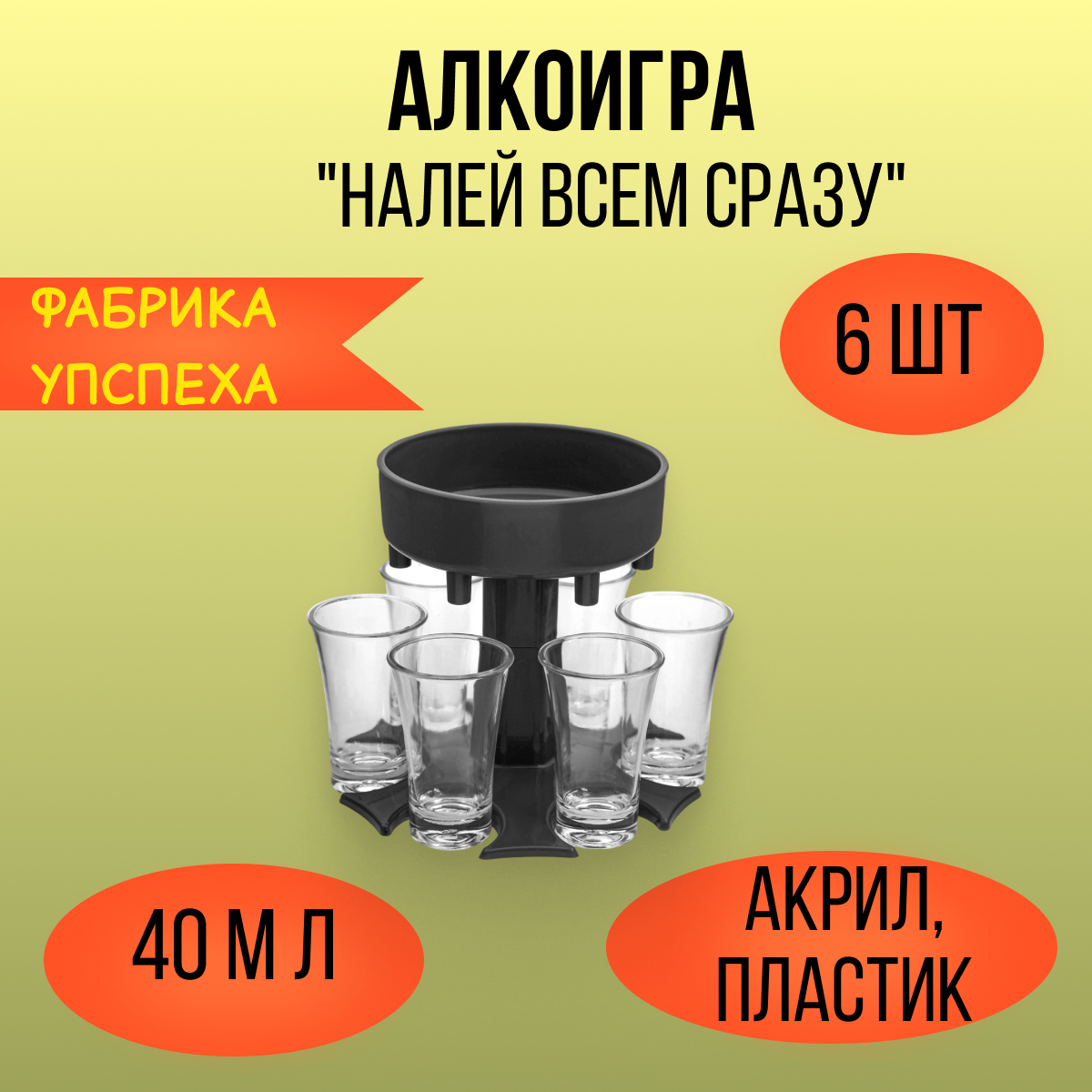 Алкоигра "Налей всем сразу", 6 рюмок в наборе, акрил 6257717 интересное: