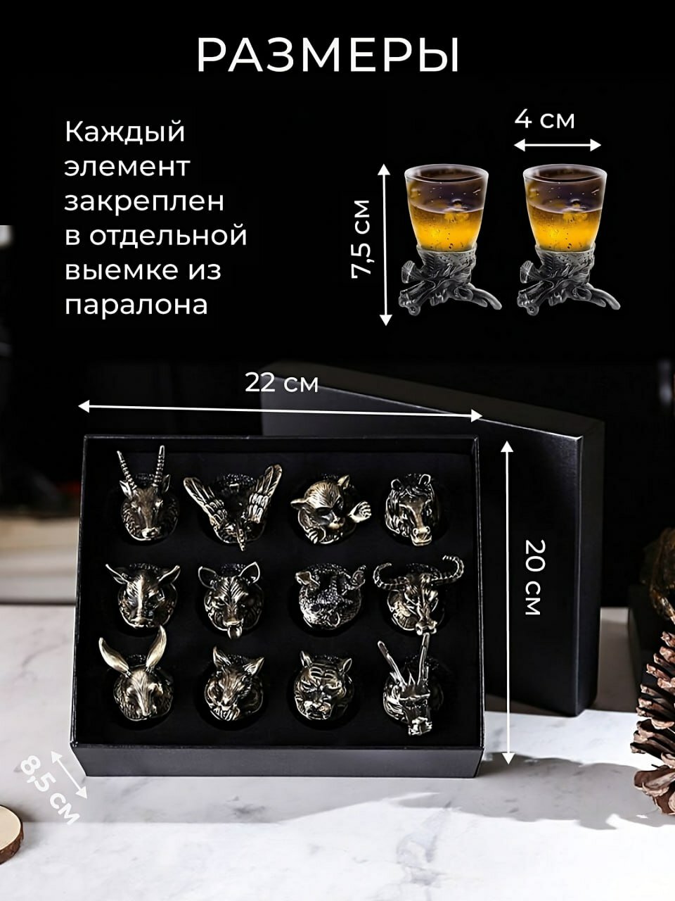 Купить Подарок мужчине , набор рюмок перевертышей 12 шт , подарочный набор рюмок по восточному календарю, цвет бронза, звери необычный подарочный набор мужчине, подарок папе, мужу, другу, брату
