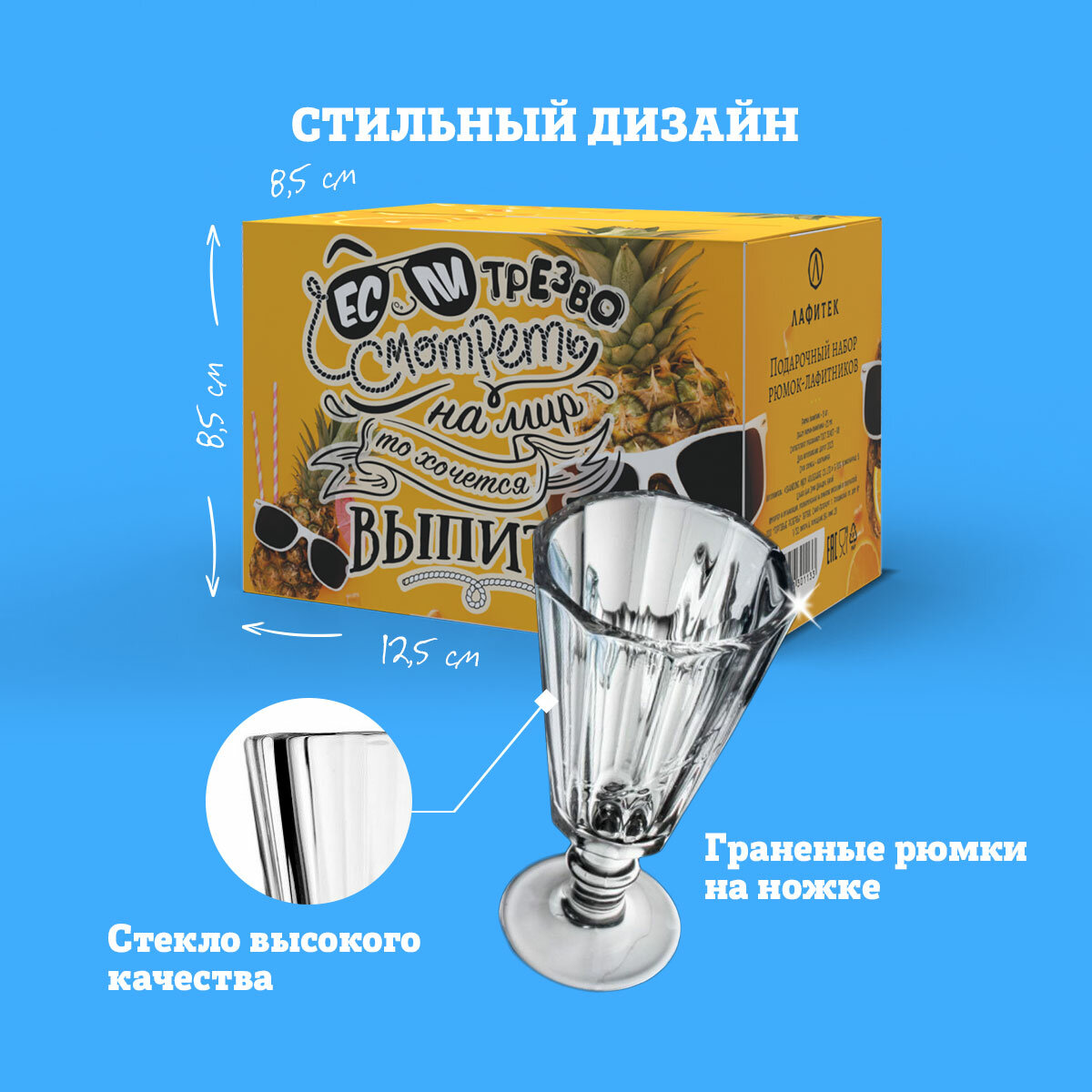 | Комплектация | Подарочная коробка, Рюмка-лафитник граненая 25 мл - 6 штук |