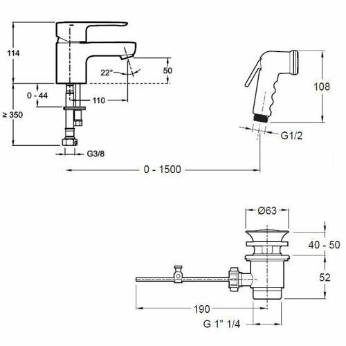 смеситель для раковины JACOB DELAFON July с гигиеническим душем хром