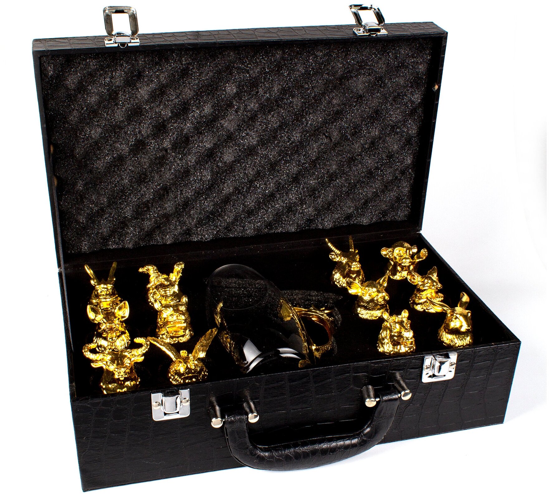 Рюмки-перевёртыши с набором для виски и водки в подарочном чемодане