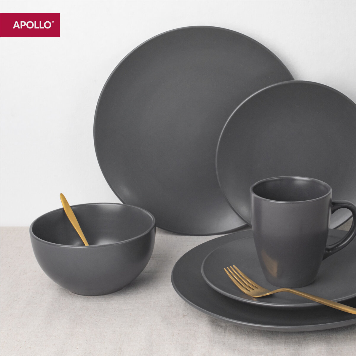 Набор столовой посуды, сервиз обеденный, набор тарелок 16 предметов APOLLO "Vento" серый/графит интересное: