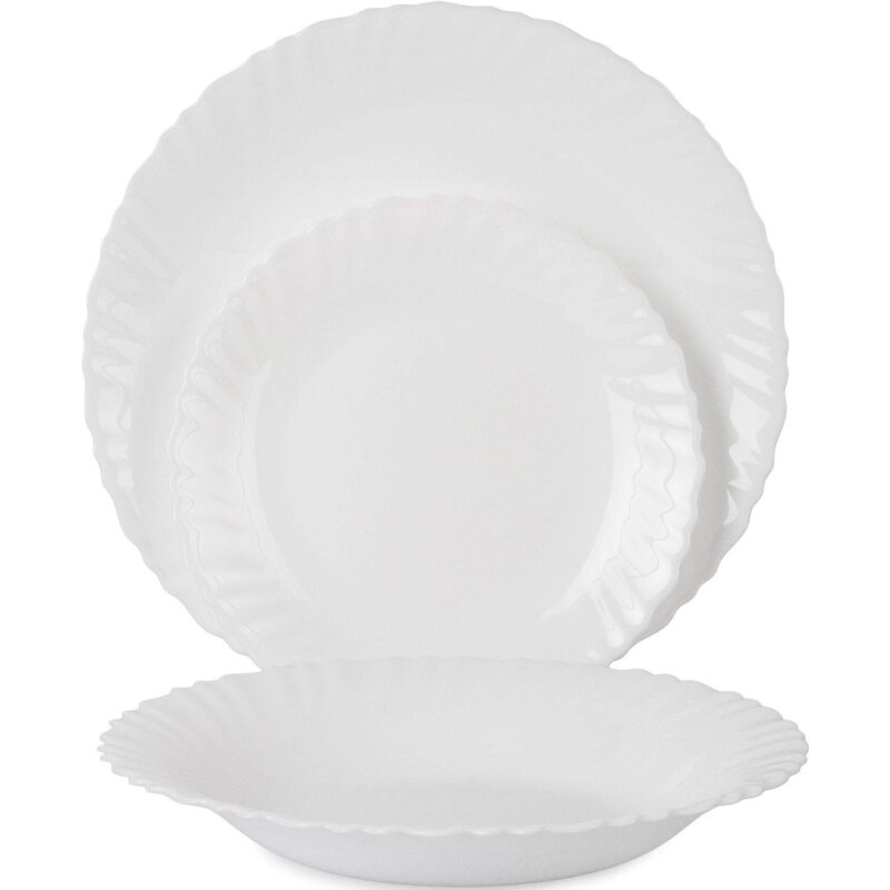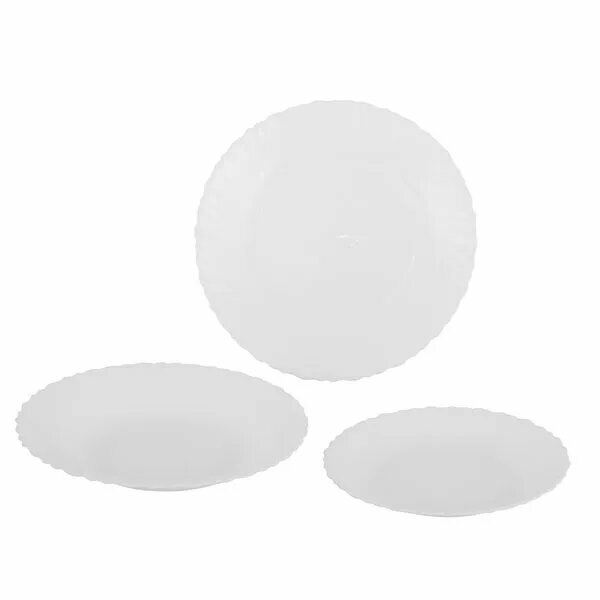| Комплектация | 18 предметов: тарелка обеденная 250 мм - 6 шт; тарелка суповая 230 мм - 6 шт; тарелка десертная 190 мм - 6 шт. |