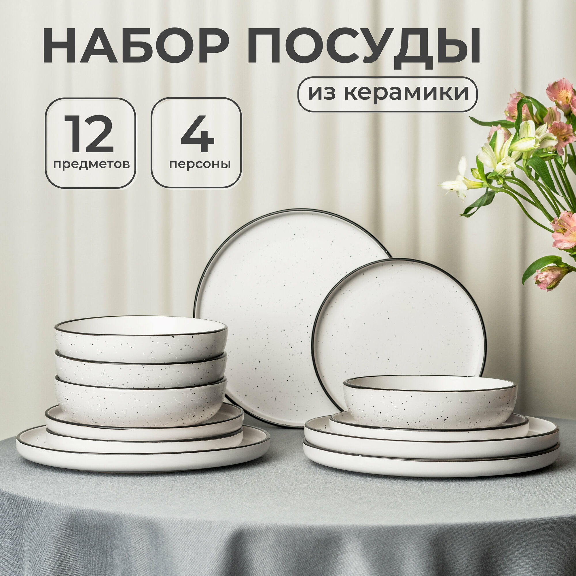 Набор посуды керамической Rosamary / сервиз столовый / набор посуды, 12 предметов