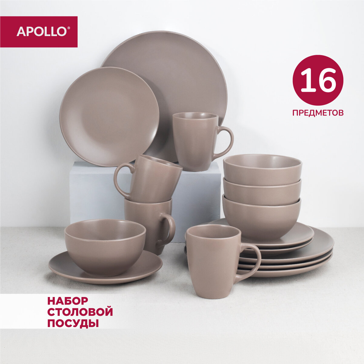 Купить Набор столовой посуды, сервиз обеденный, набор тарелок 16 предметов APOLLO "Vento" бежевый/коричневый
