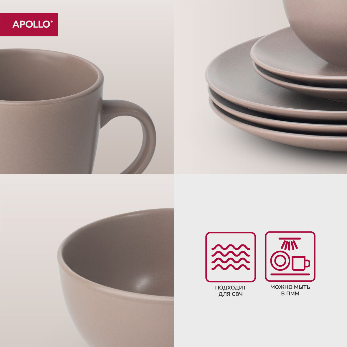 Набор столовой посуды, сервиз обеденный, набор тарелок 16 предметов APOLLO "Vento" бежевый/коричневый интересное:
