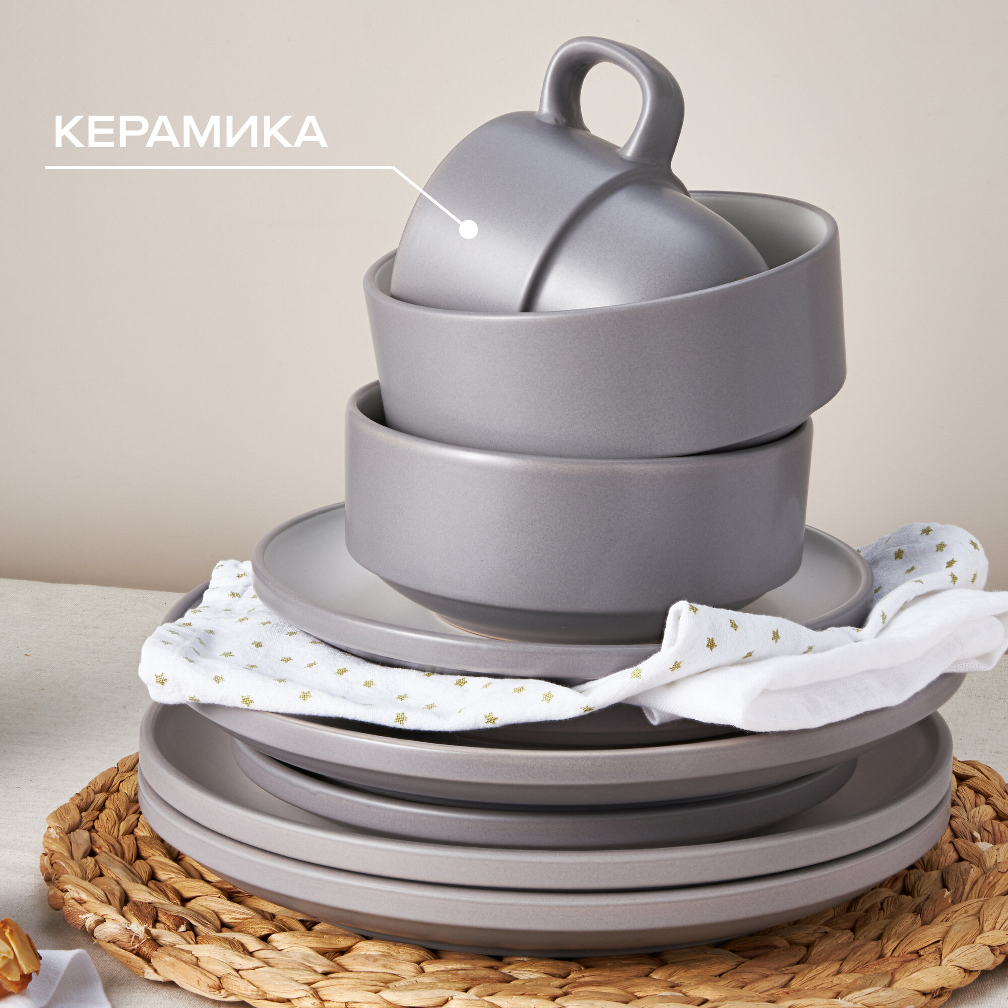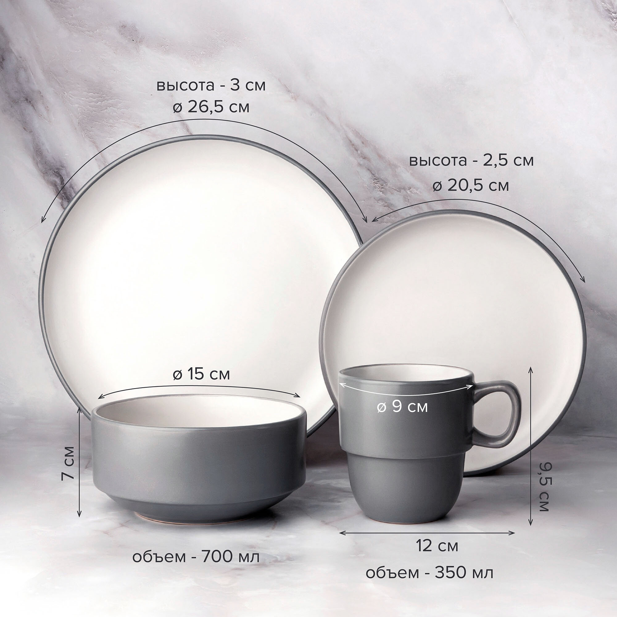 | Состав набора | кружка, салатник, тарелка десертная, тарелка обеденная |