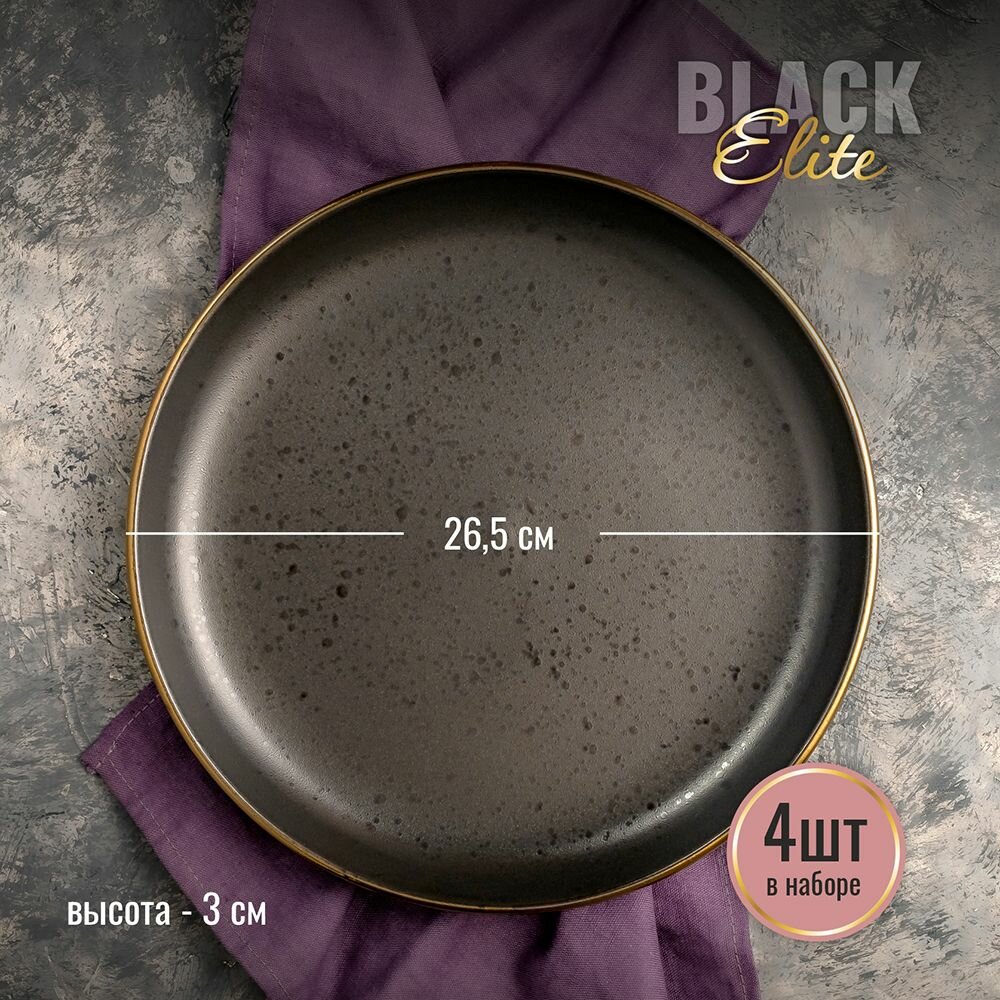 Набор тарелок 26см, 2шт Elite black тарелки круглые черные керамические тарелка для второго