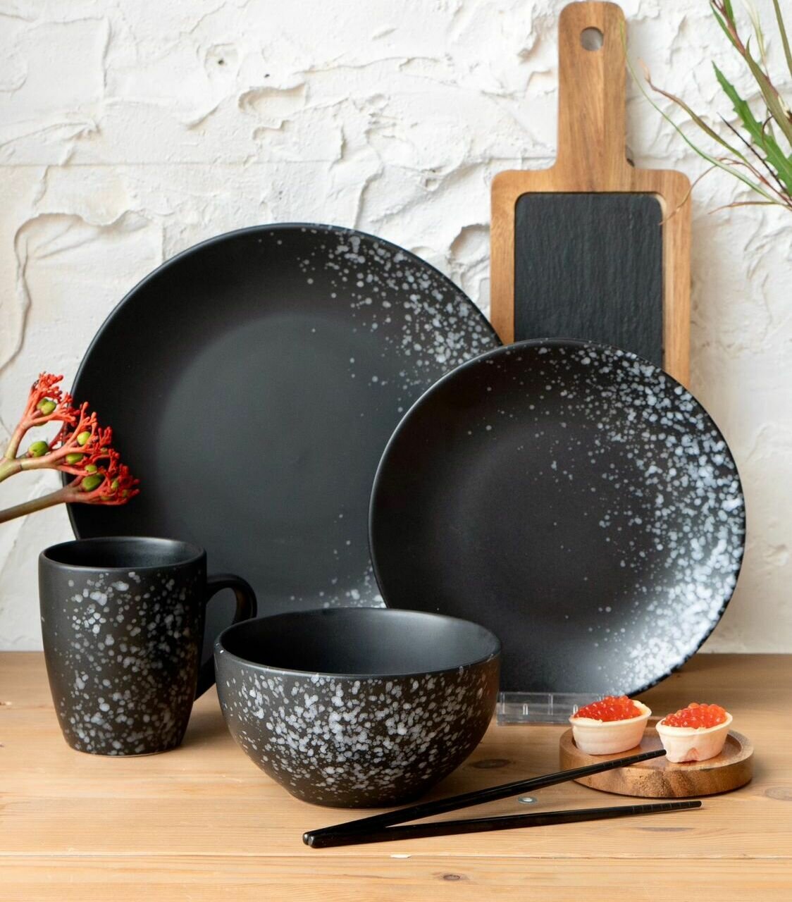 Набор посуды столовой 10 предметов на 2 персоны Elite Black керамика сервиз обеденный