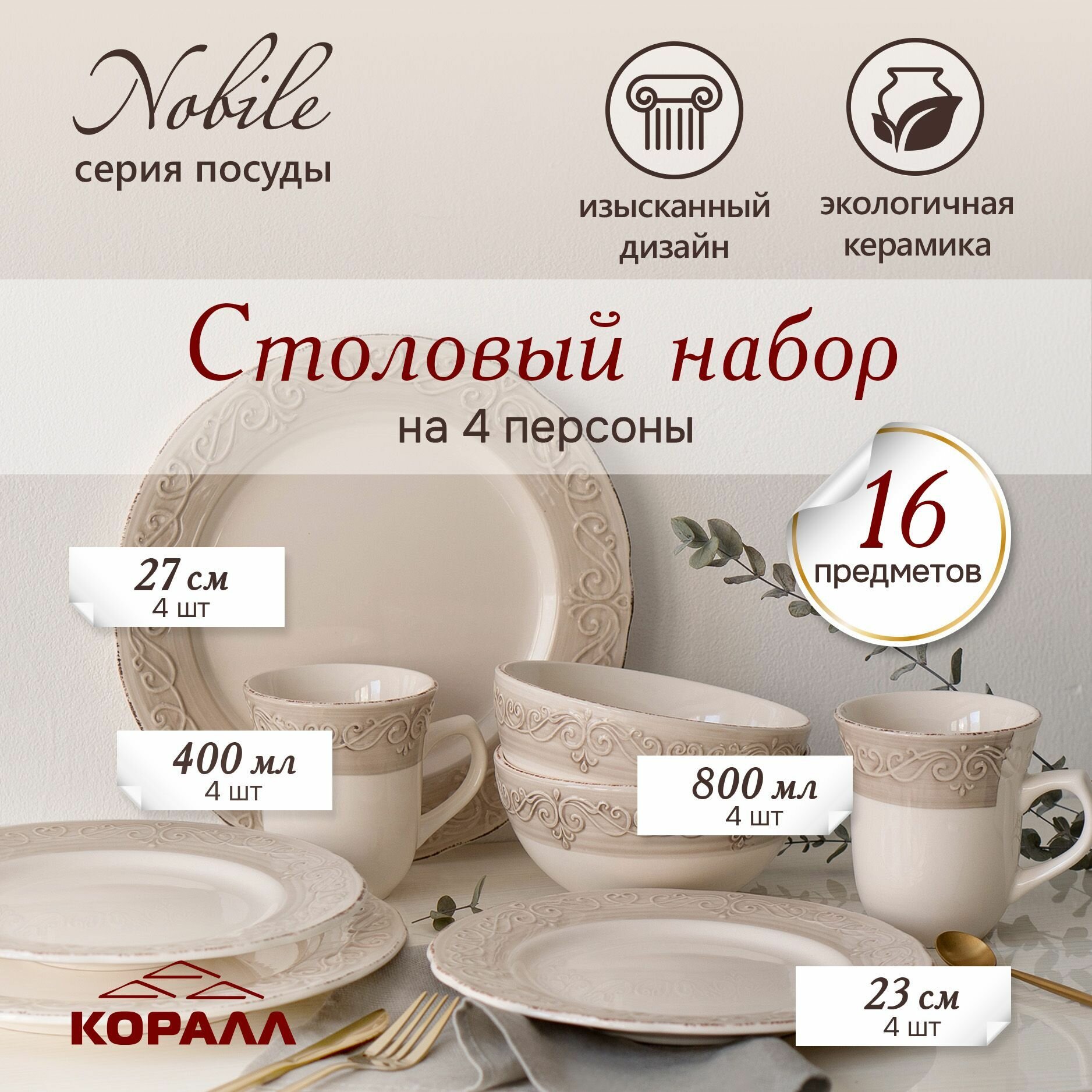 Купить Набор посуды столовой 16 пред. 4 перс. Nobile столовый сервиз обеденный керамика