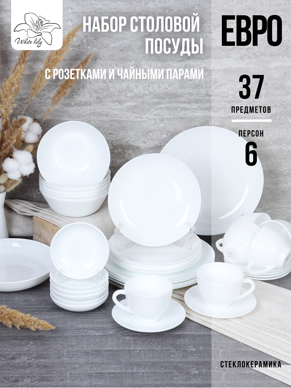 | Комплектация | набор столовой посуды - 37 предметов |