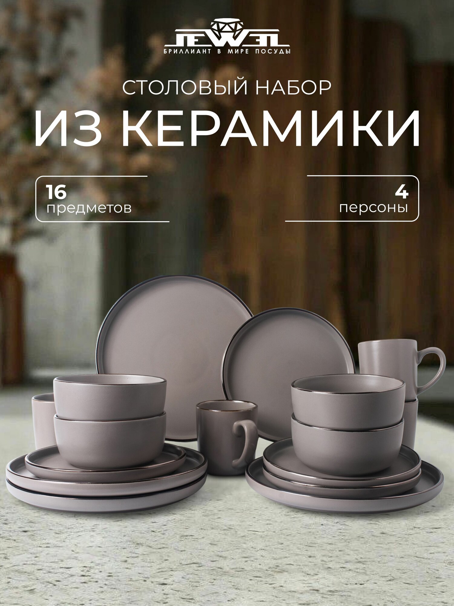 Столовый набор Jewel Лаурель 16 предмета (керамика) ПС0022-65