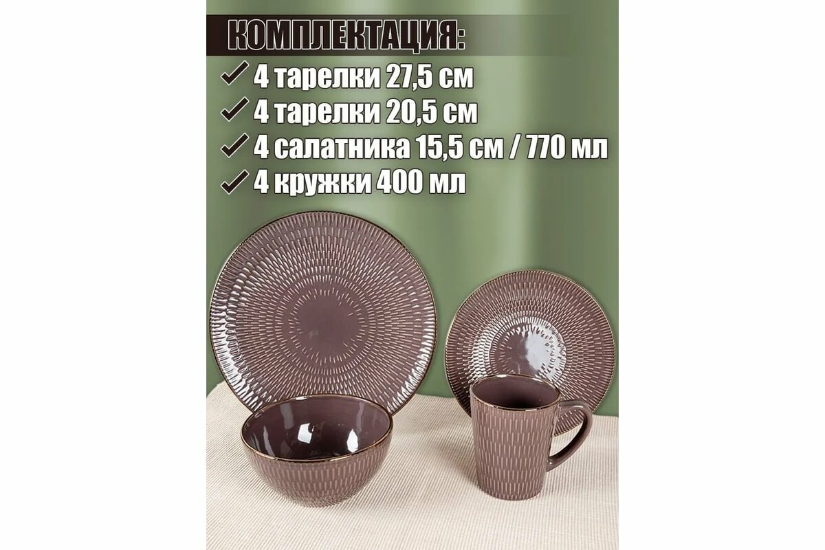 Набор столовой посуды на 4 персоны, сервиз Мокко 16 предметов