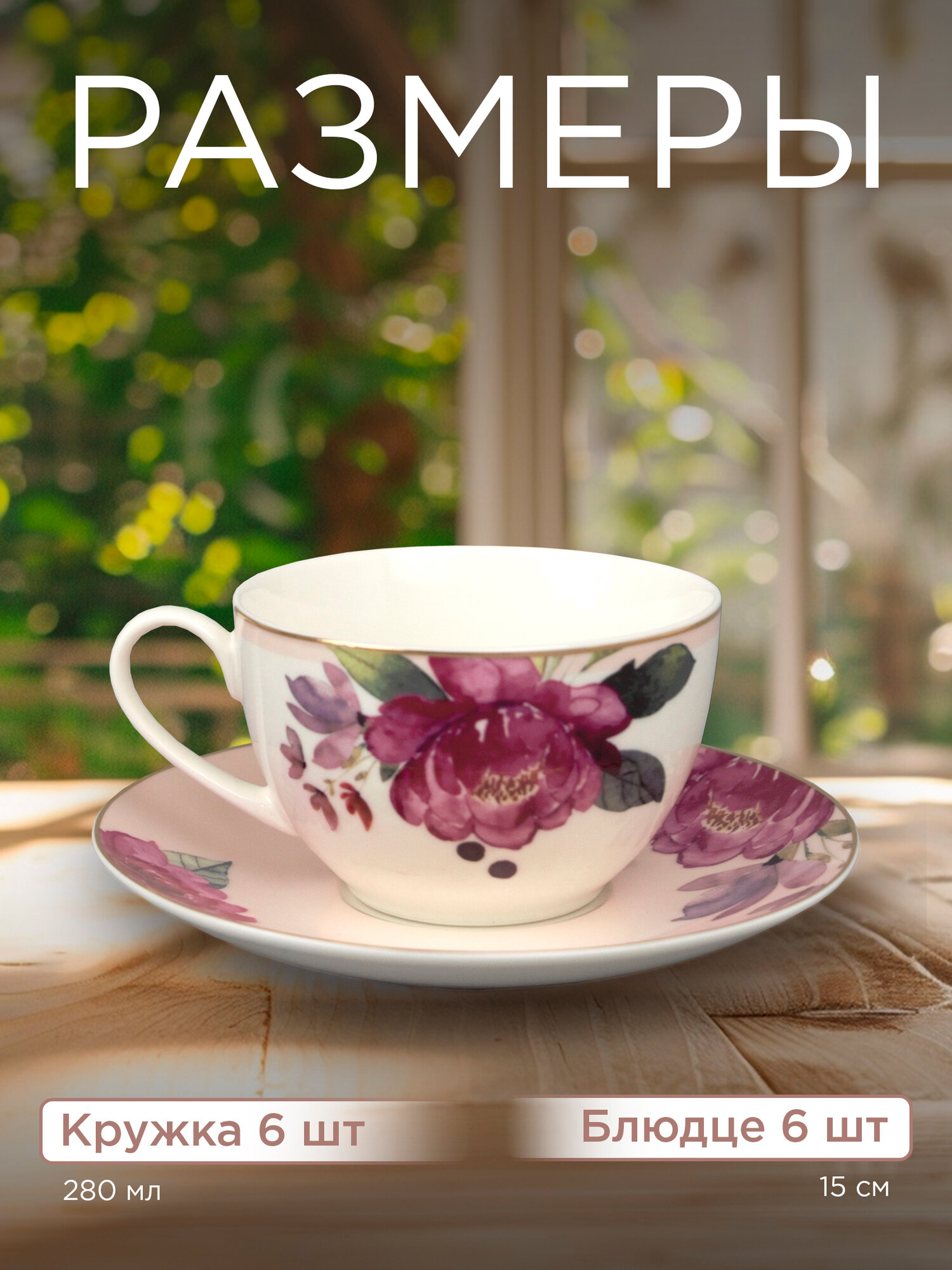 Купить Чайный сервиз на 6 персон чайная пара Пион