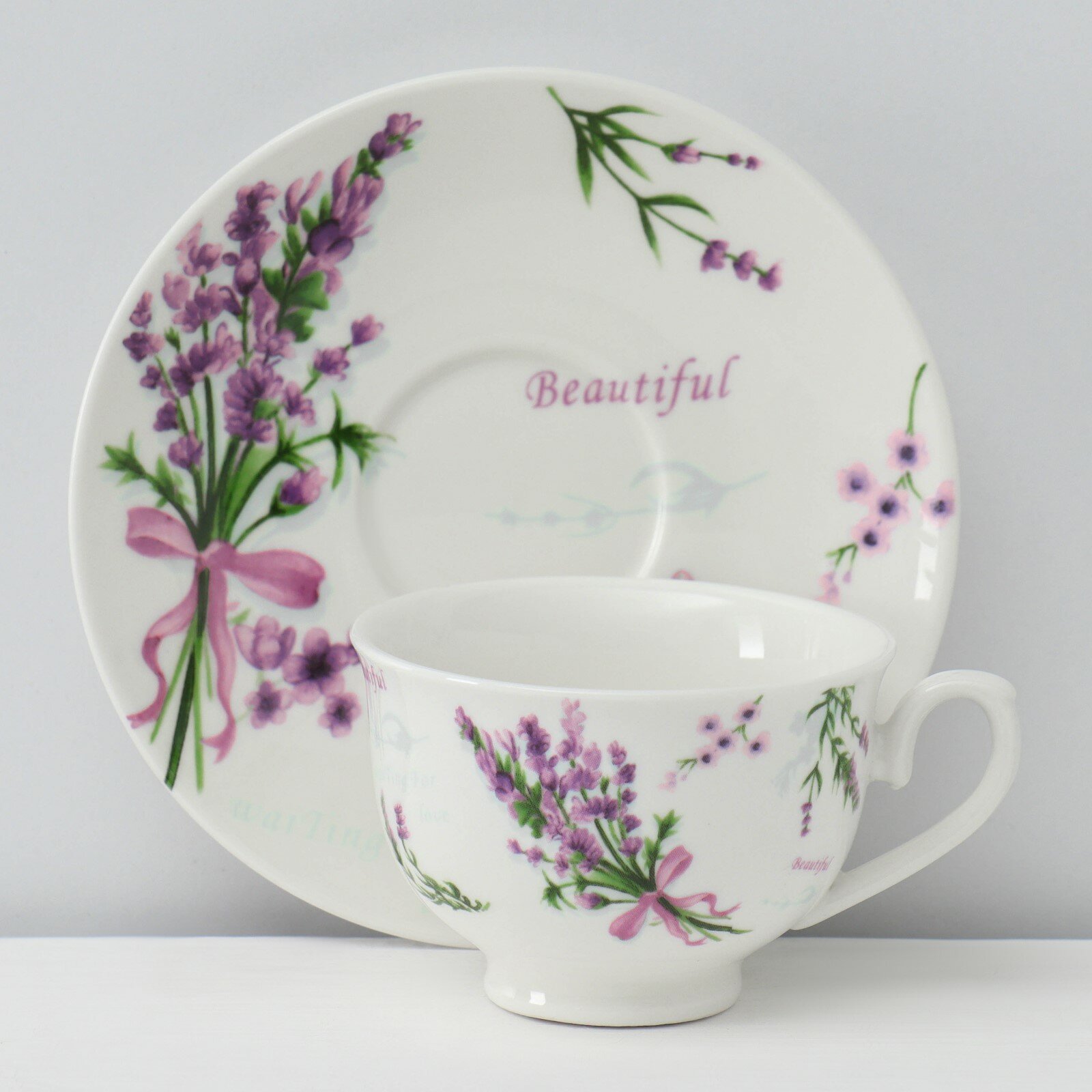 Сервиз фарфоровый кофейный Доляна «Лаванда», 12 предметов: 6 чашек 80 мл, 6 блюдец