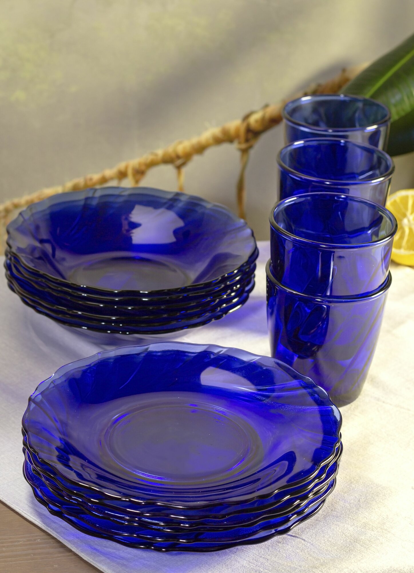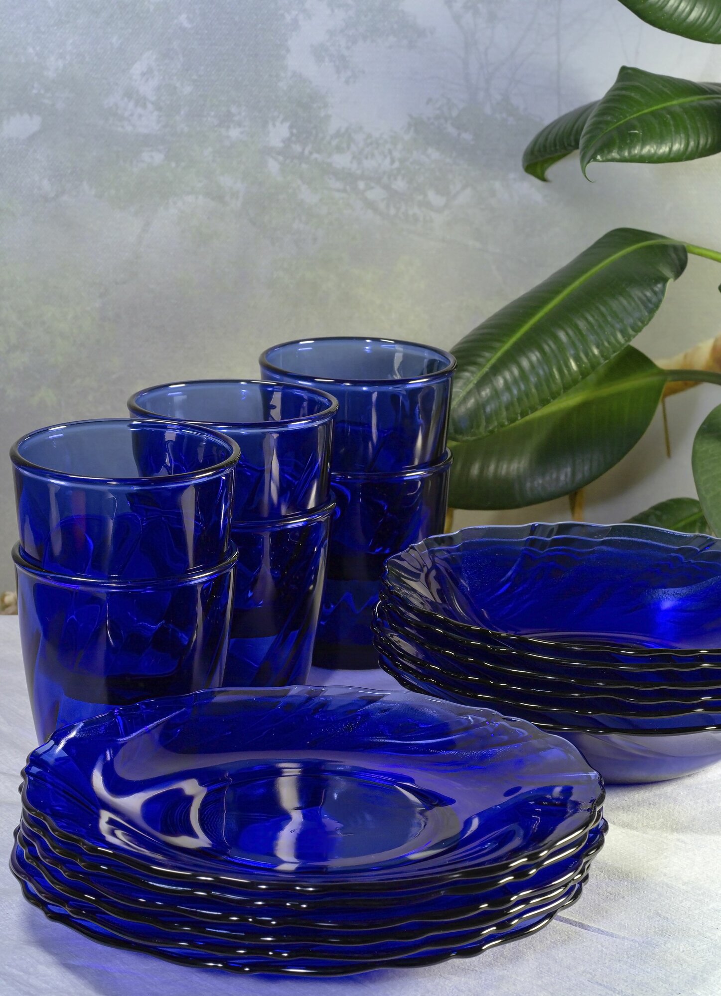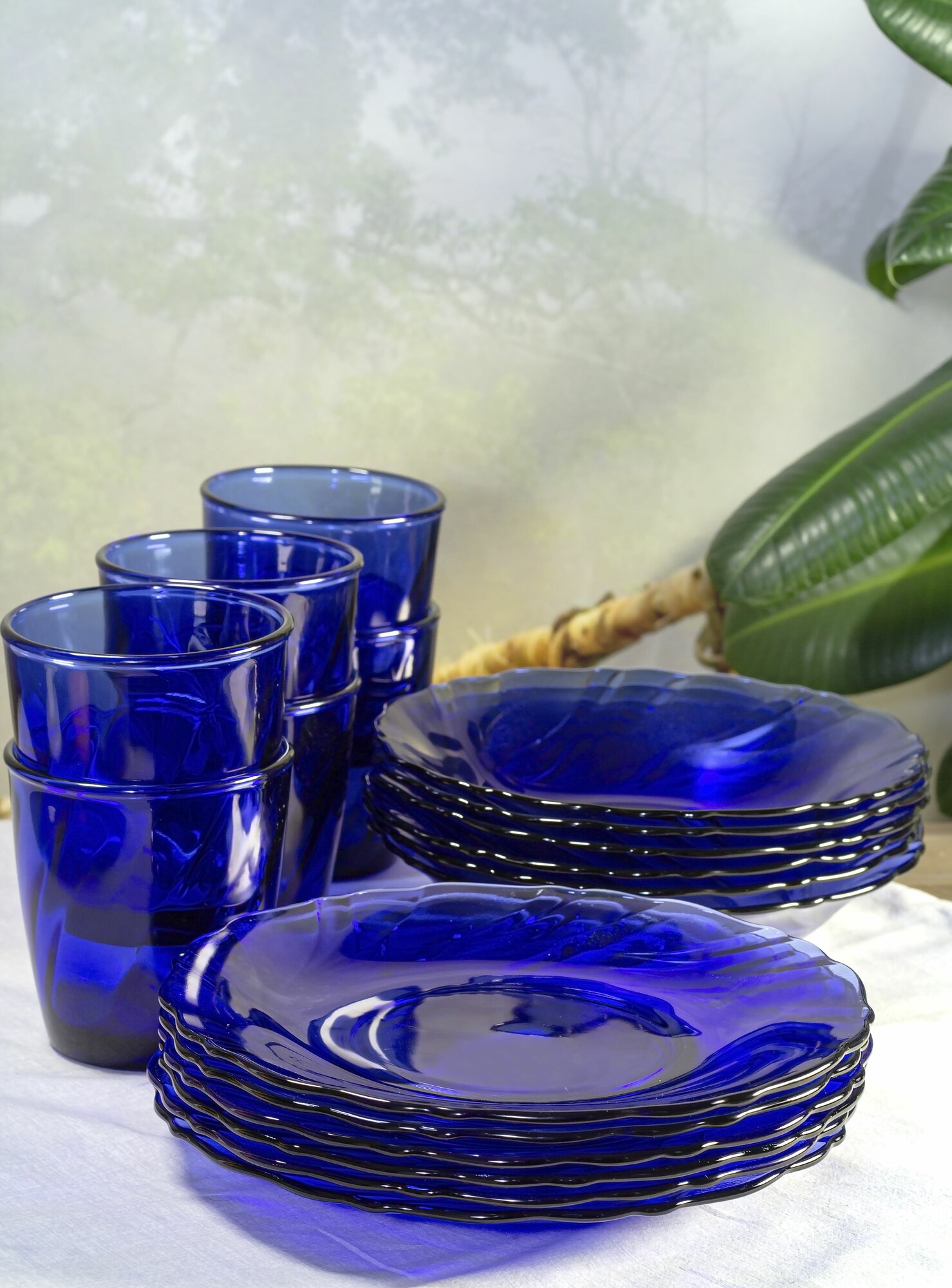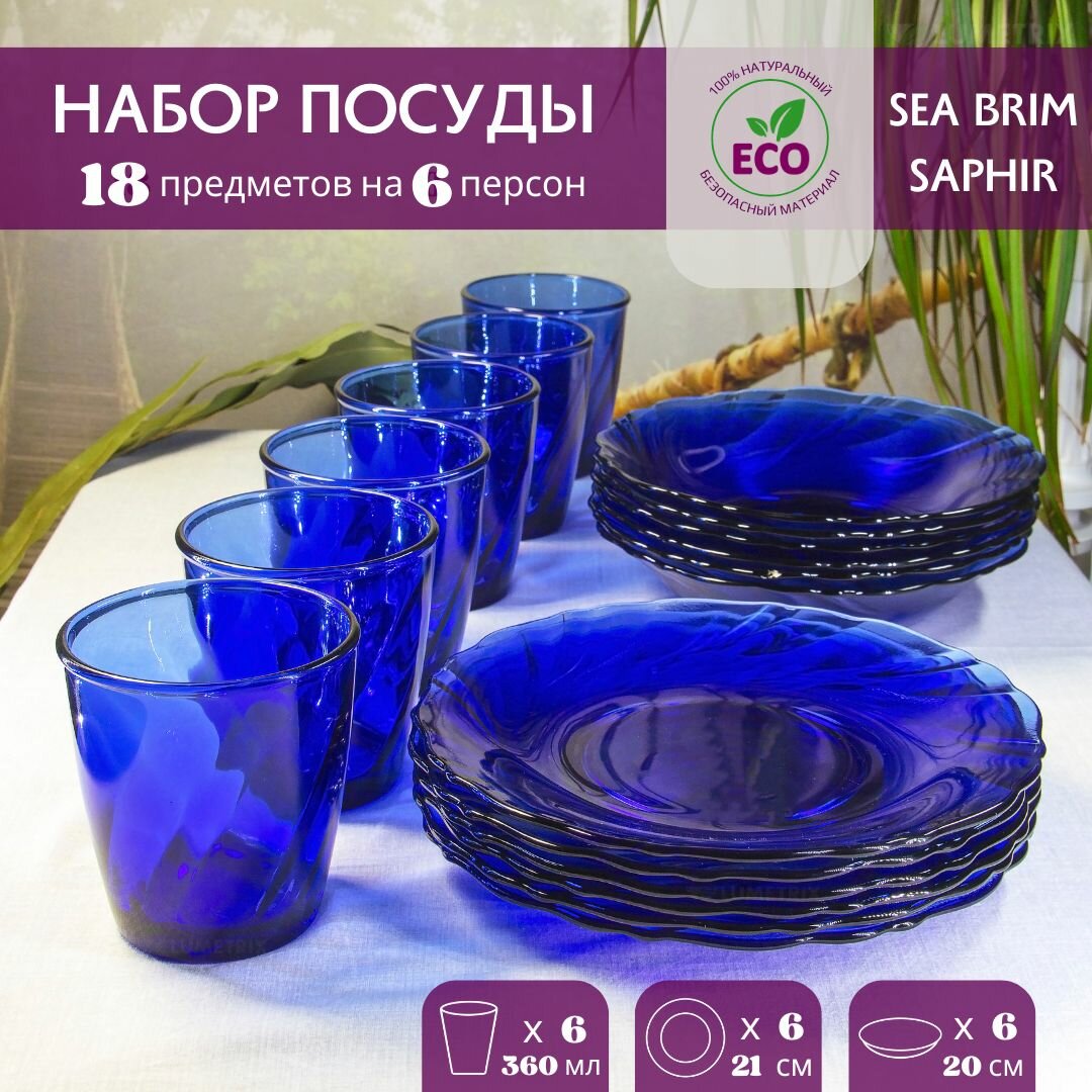 Набор посуды столовой, сервиз, набор тарелок, с бокалами, на 6 персон, 18 предметов, SEA BRIM SAPHIR VERSO DESIGN