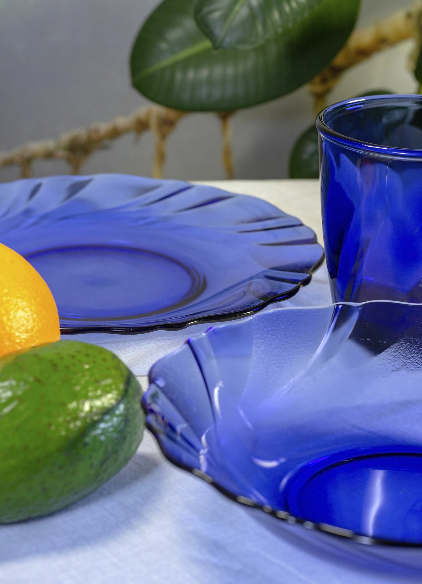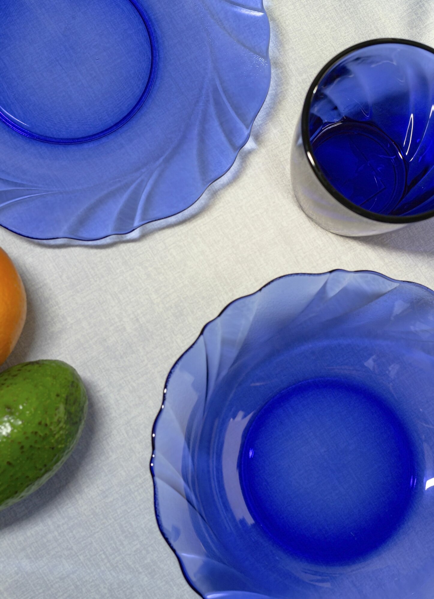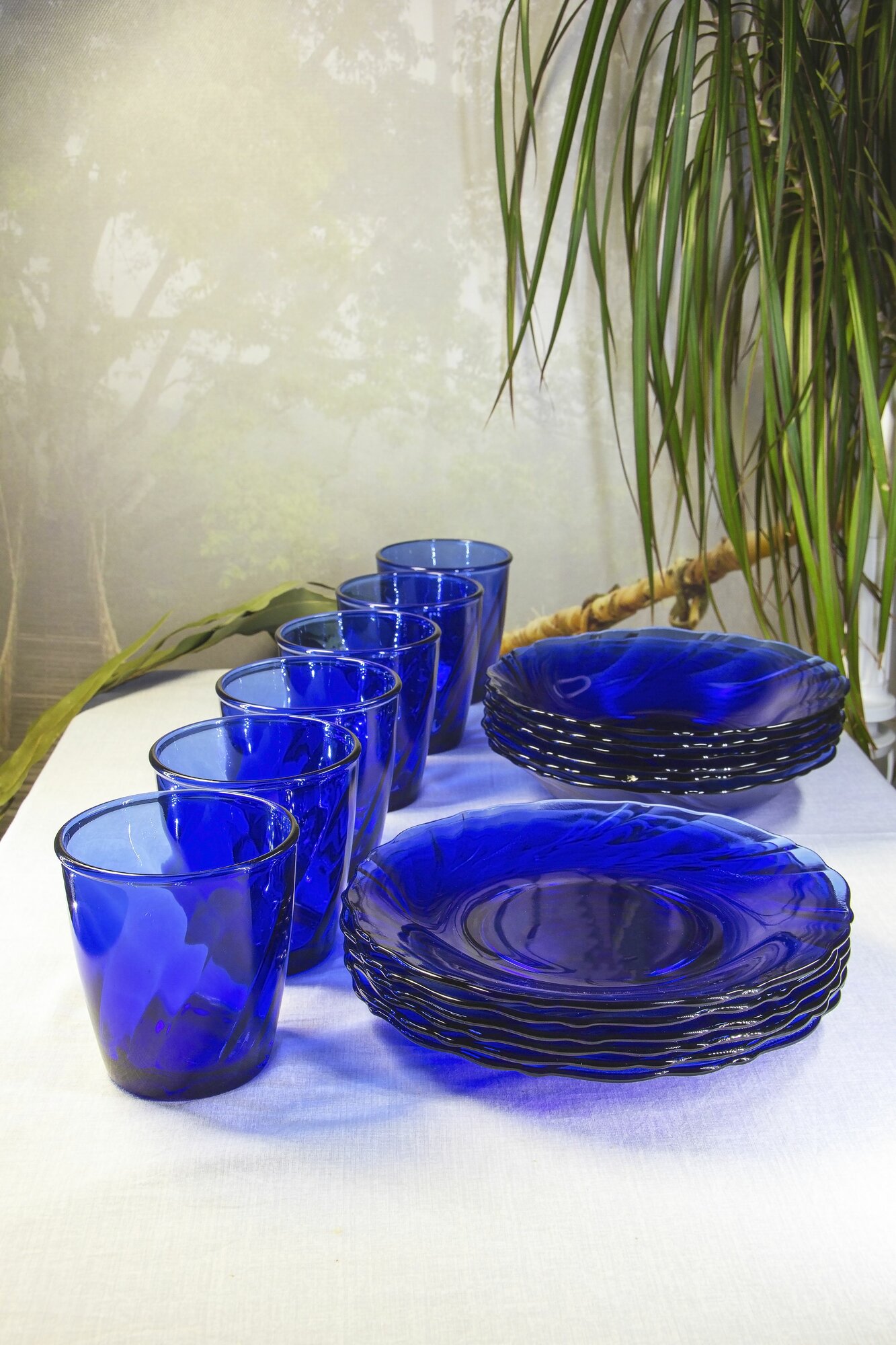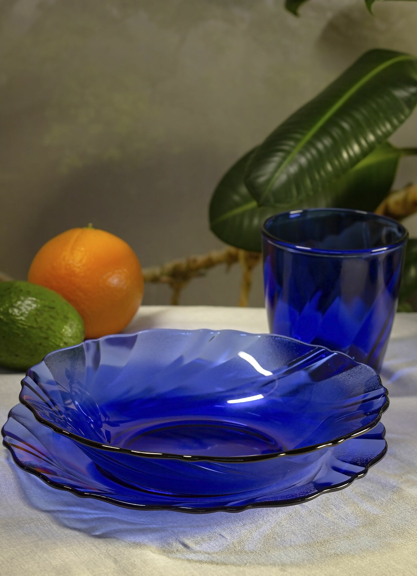 Набор посуды столовой, сервиз, набор тарелок, с бокалами, на 6 персон, 18 предметов, SEA BRIM SAPHIR VERSO DESIGN