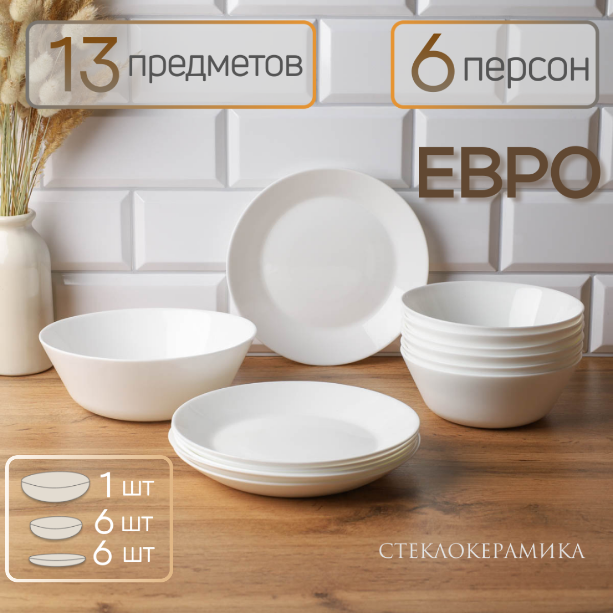 Столовый набор 13 предметов Евро белый на 6 персон интересное: