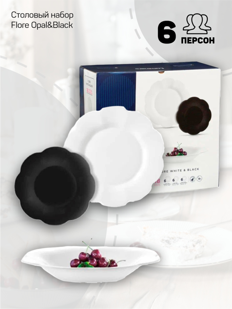 СохранитьСтоловый набор Luminarc FLORE OPAL&BLACK V0400, 18 предметов интересное: