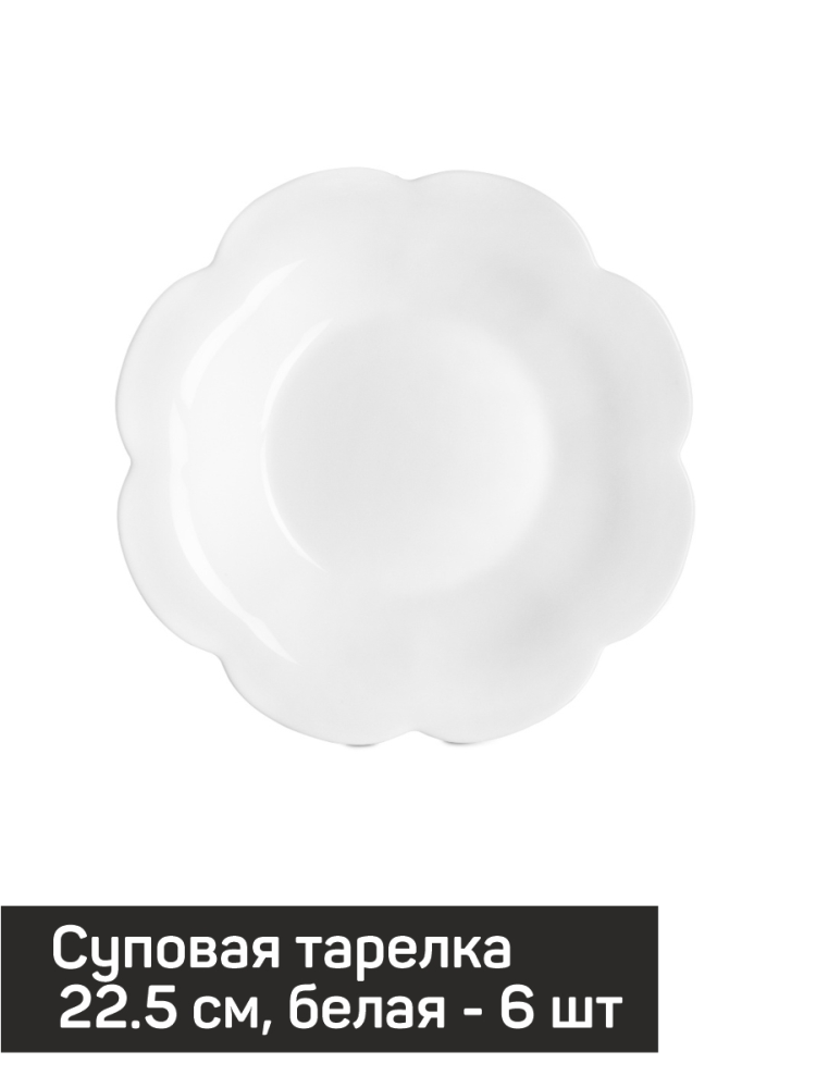 | Комплектация | 18 тарелок: 6 обеденных, 6 суповых, 6 десертных |