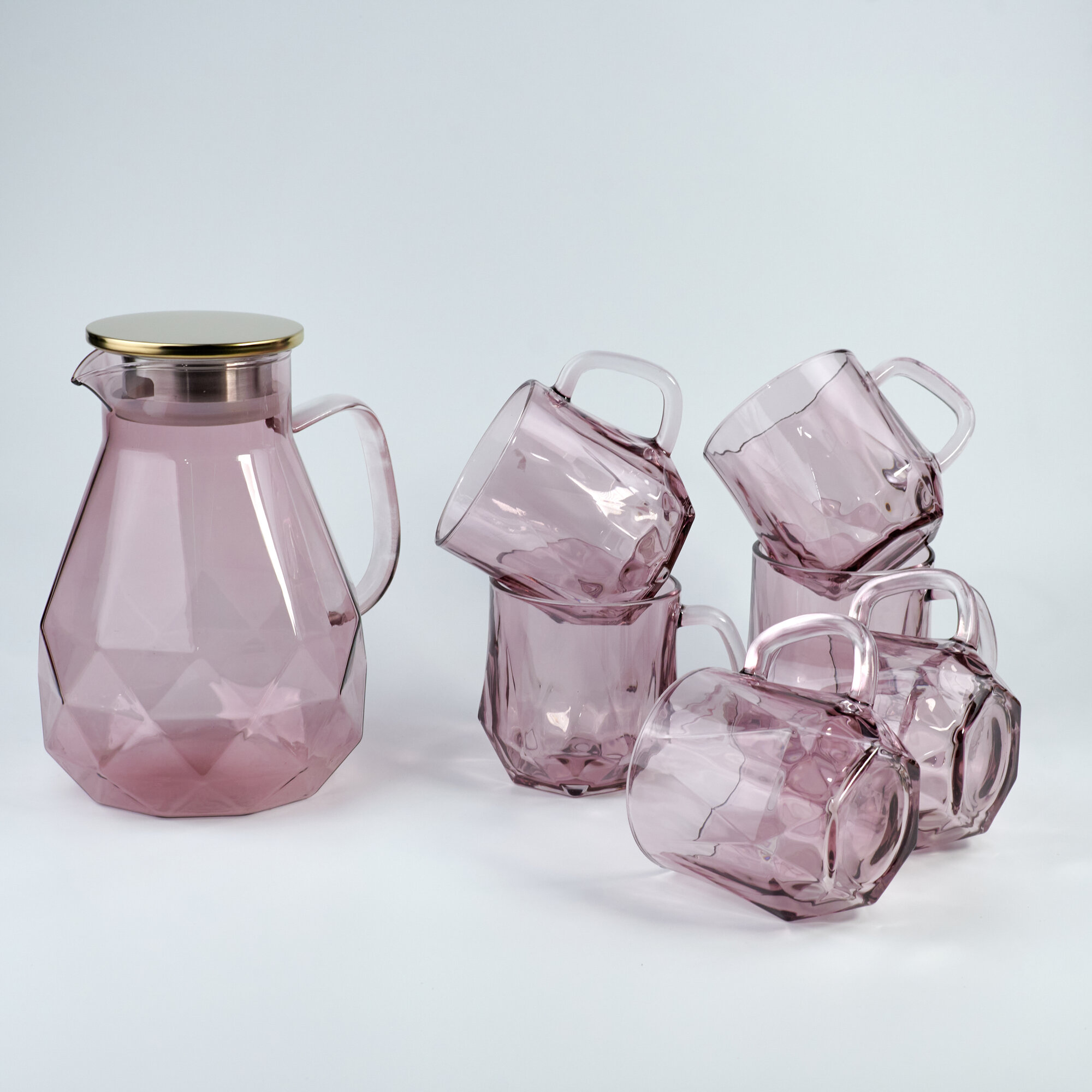 Купить Набор: кувшин-заварник 1,9 л и 6 кружек 350 мл розовый Lenardi (179657)