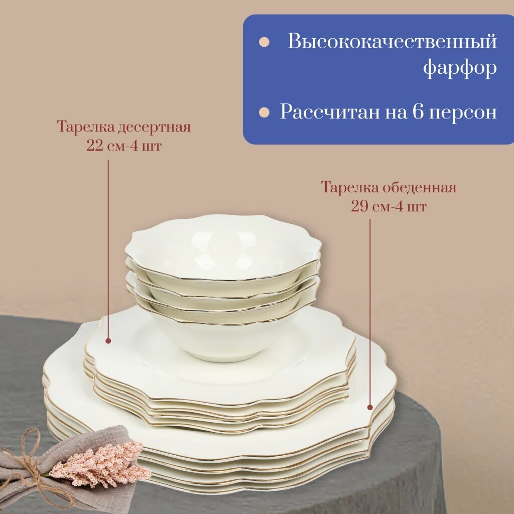 Столовый набор на 4 персоны 12 предметов Nouvelle "Belle" тарелки 27см, 21см, салатники 15см, фарфор интересное: