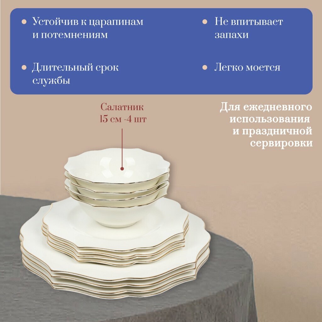 | Комплектация | Тарелка - 8 шт, салатник - 4 шт |