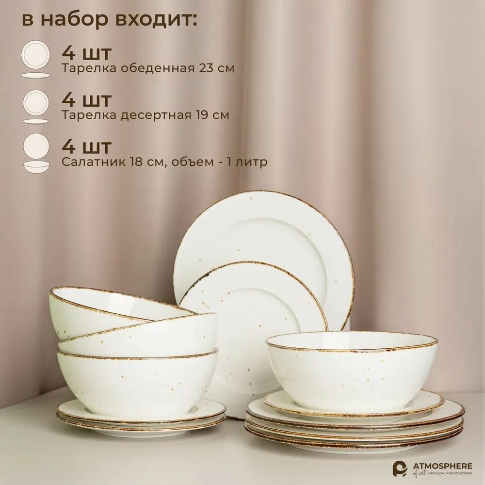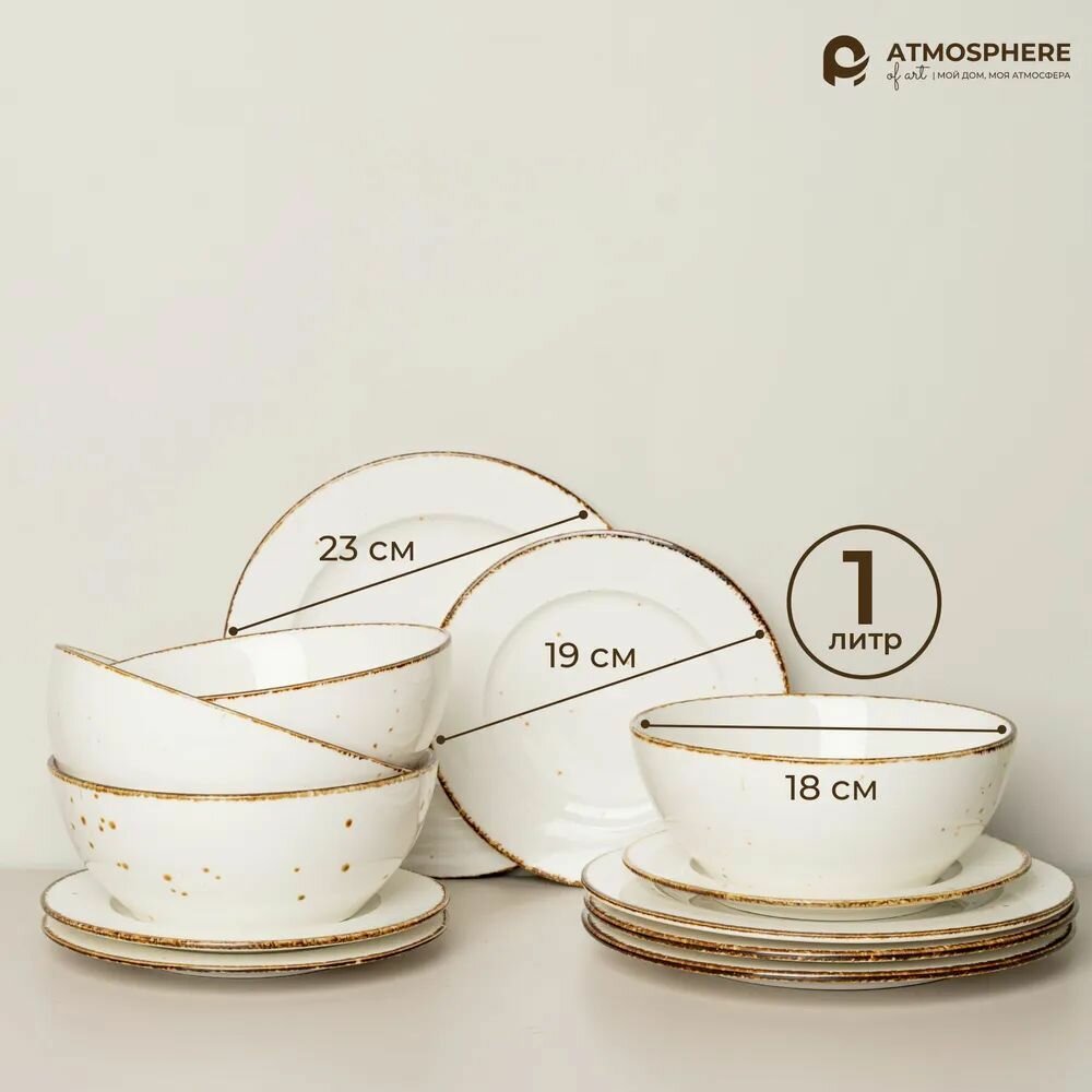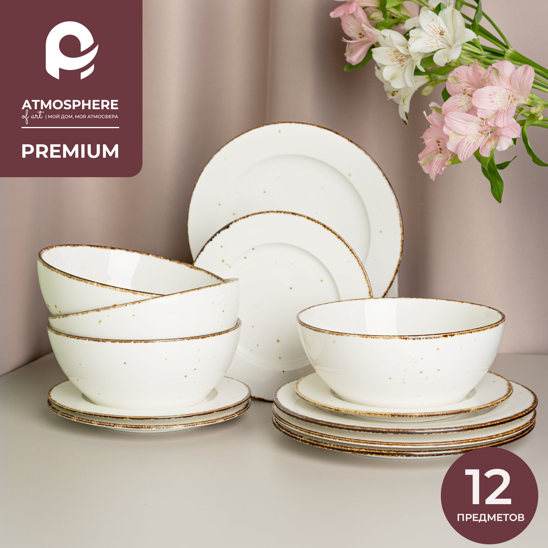 Набор столовой посуды 12 предметов Atmosphere of Art "Elegantica" /фарфоровый столовый сервиз посуды/ белый с золотом