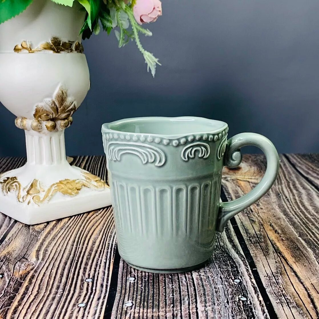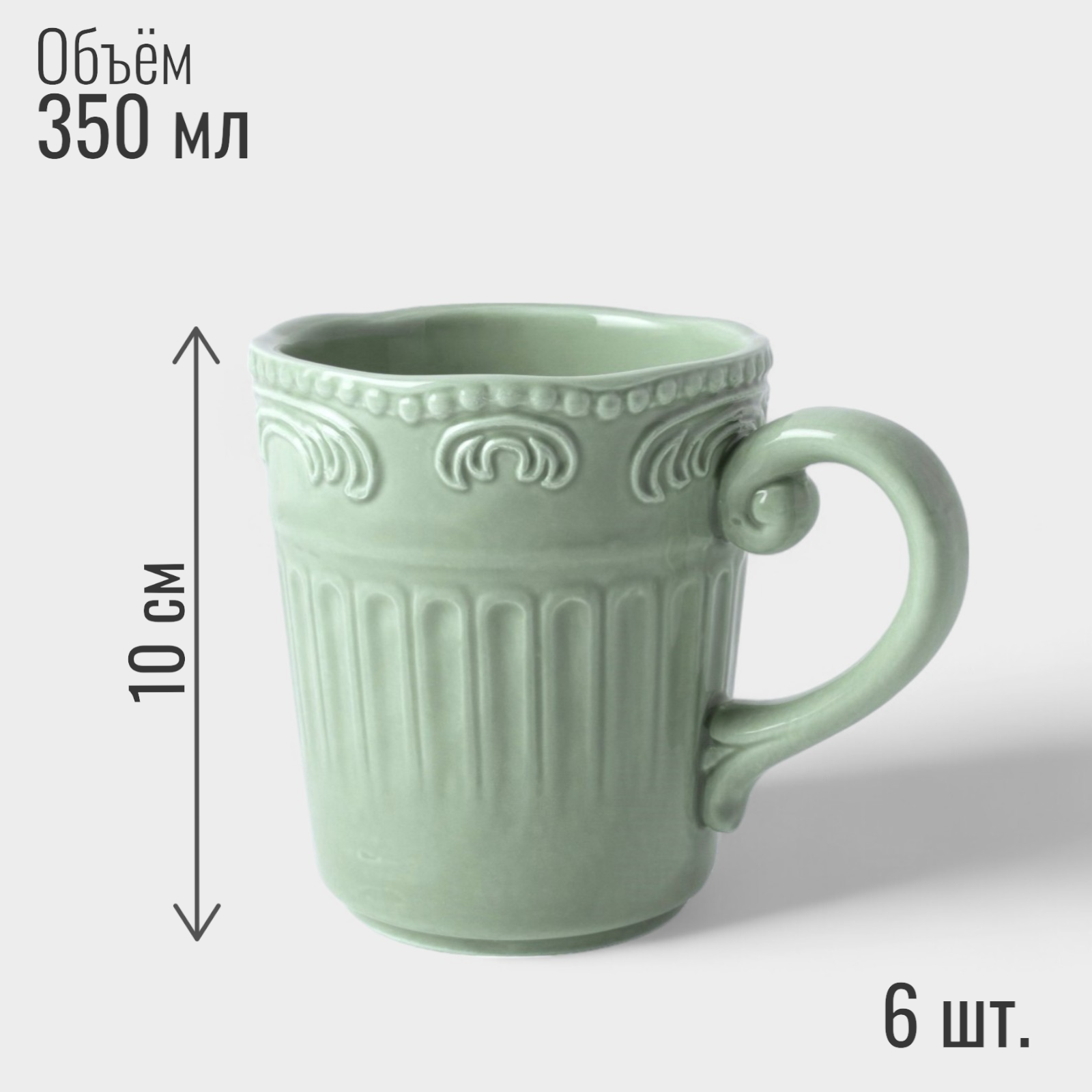 Набор посуды столовой на 6 персон с кружками, 18 предметов "Барокко", цвет зеленый, сервиз обеденный керамический интересное: