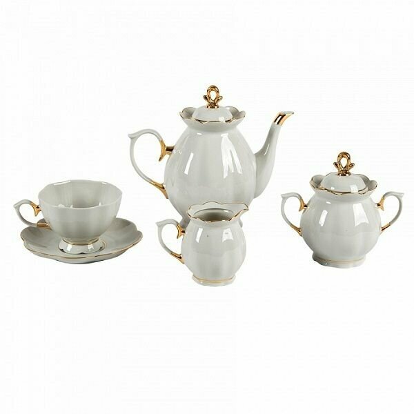 | Комплектация | чайник 1000 мл - 1 шт, сахарница 400 мл - 1 шт, сливочник 180 мл - 1 шт, чашка чайная 250 мл - 6 шт, блюдце чайное 150 мм - 6 шт |