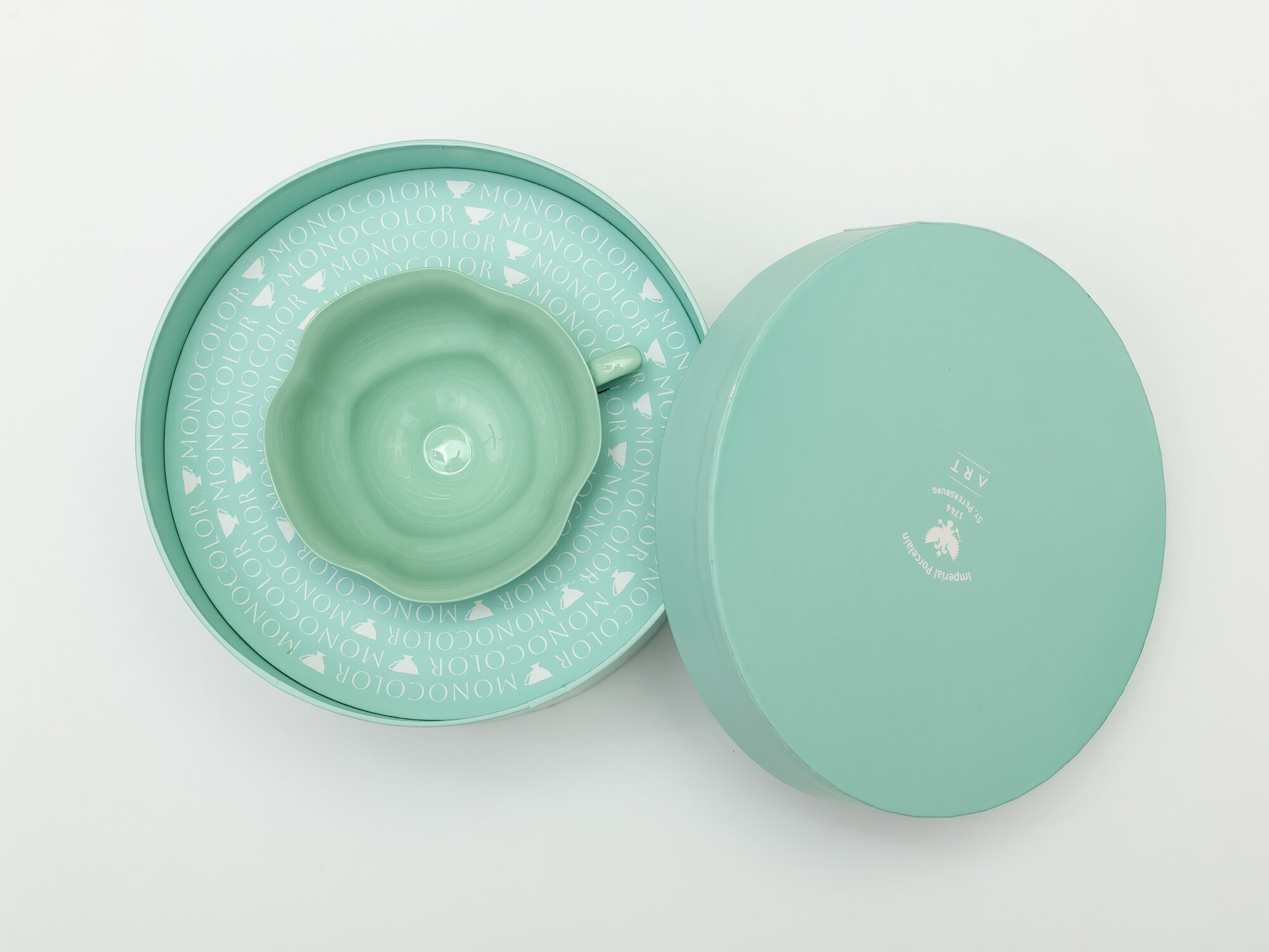 Чашка чайная 220 мл. Форма "Наташа", рисунок "Моноколор Мята". Подарочный набор, костяной фарфор. Императорский фарфоровый завод ИФЗ. интересное: